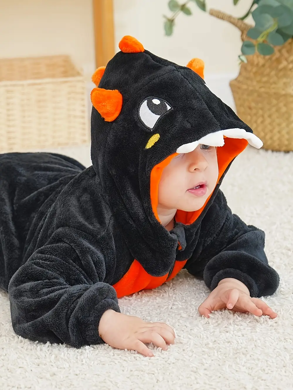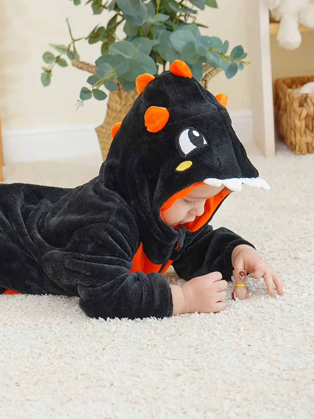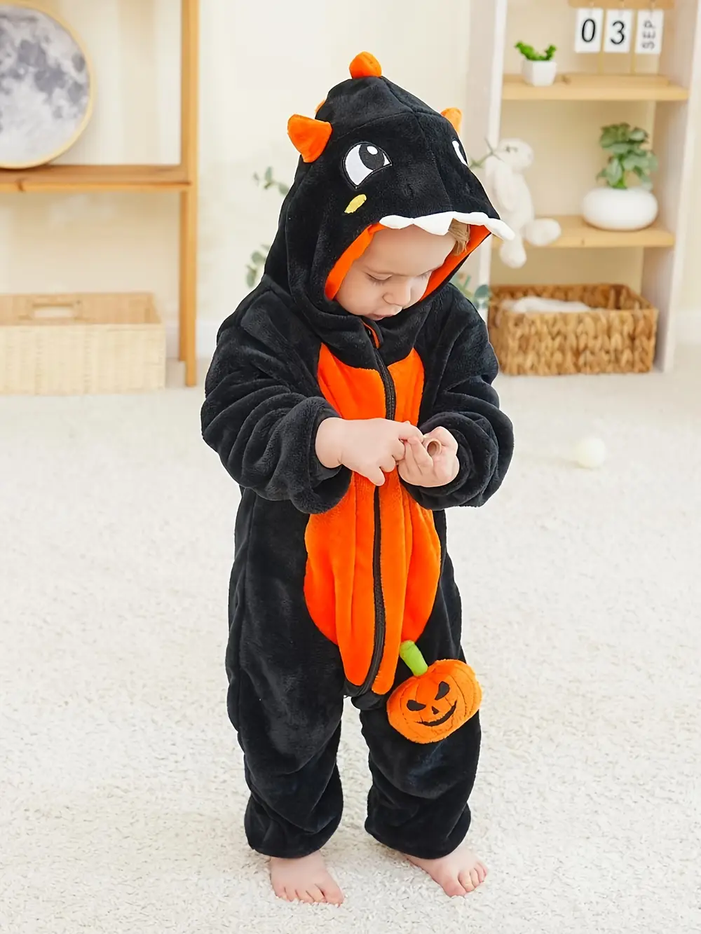Grenouillère bébé à capuche dinosaure motif citrouille – polaire douce