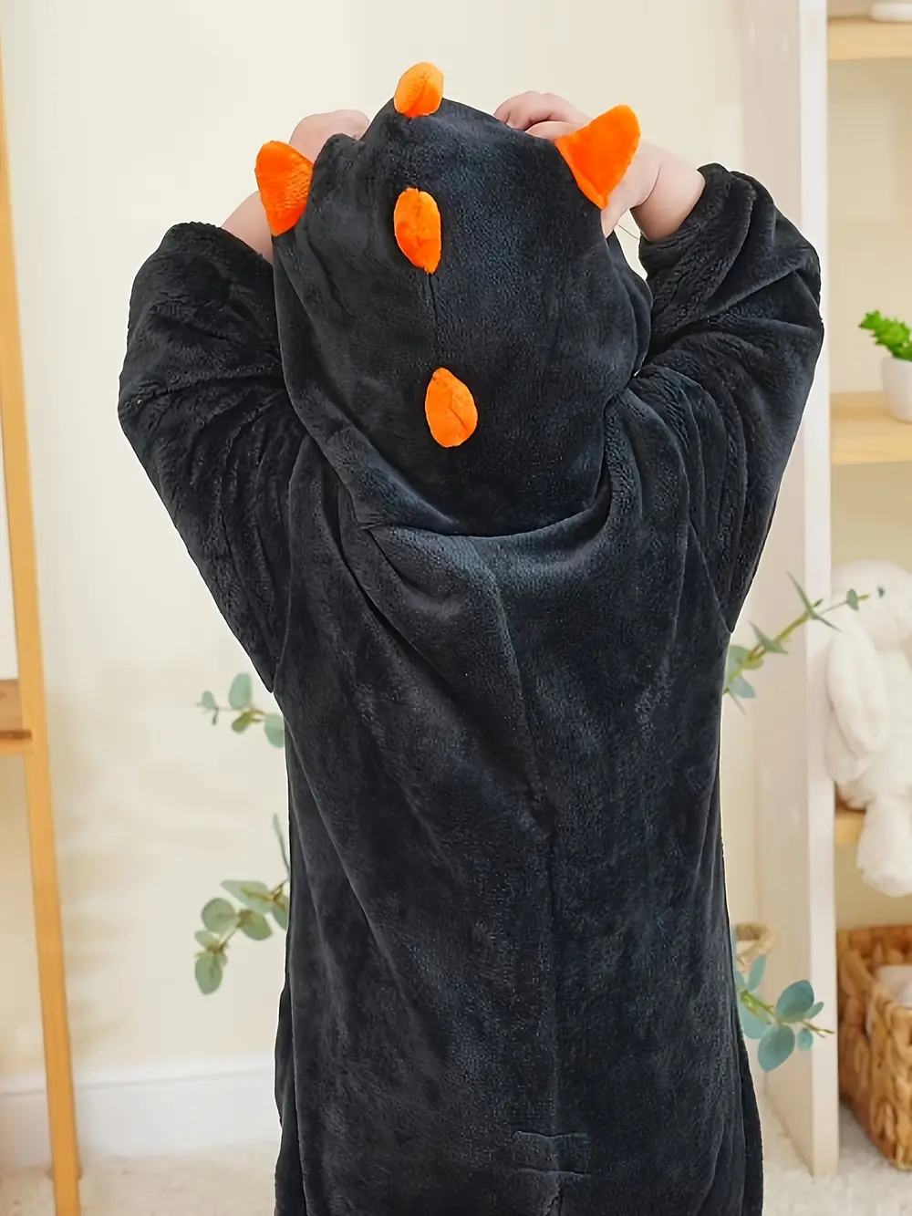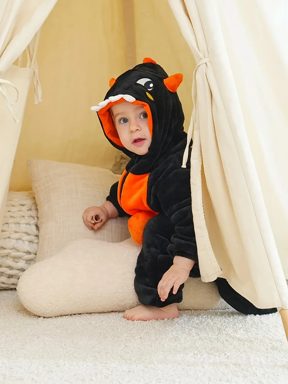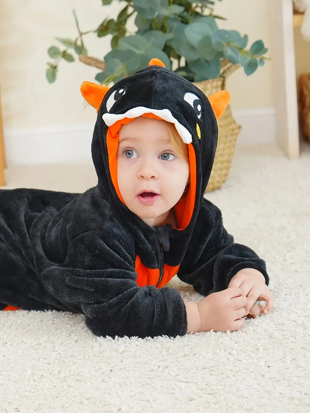 Grenouillère bébé à capuche dinosaure motif citrouille – polaire douce