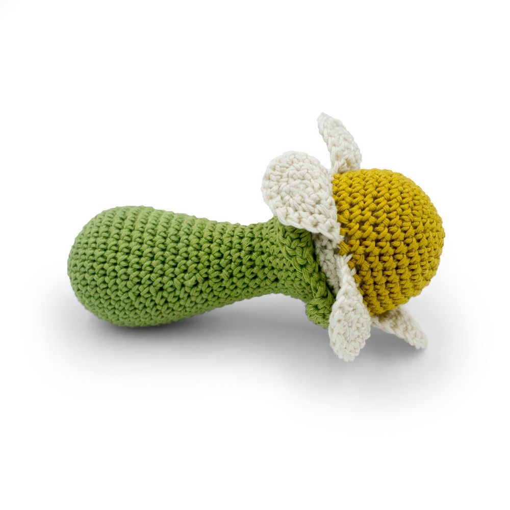 Hochet en coton bio – fleur camomille – Myum.