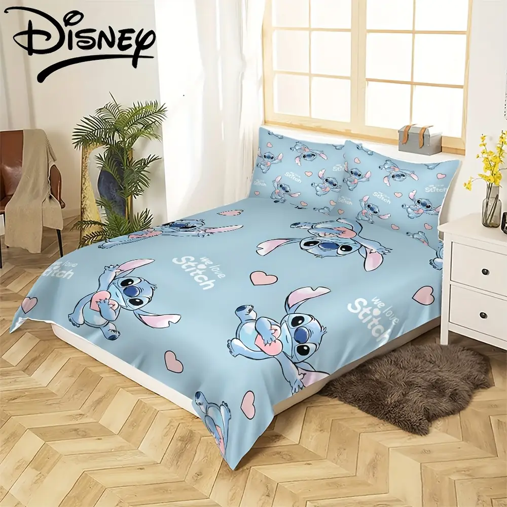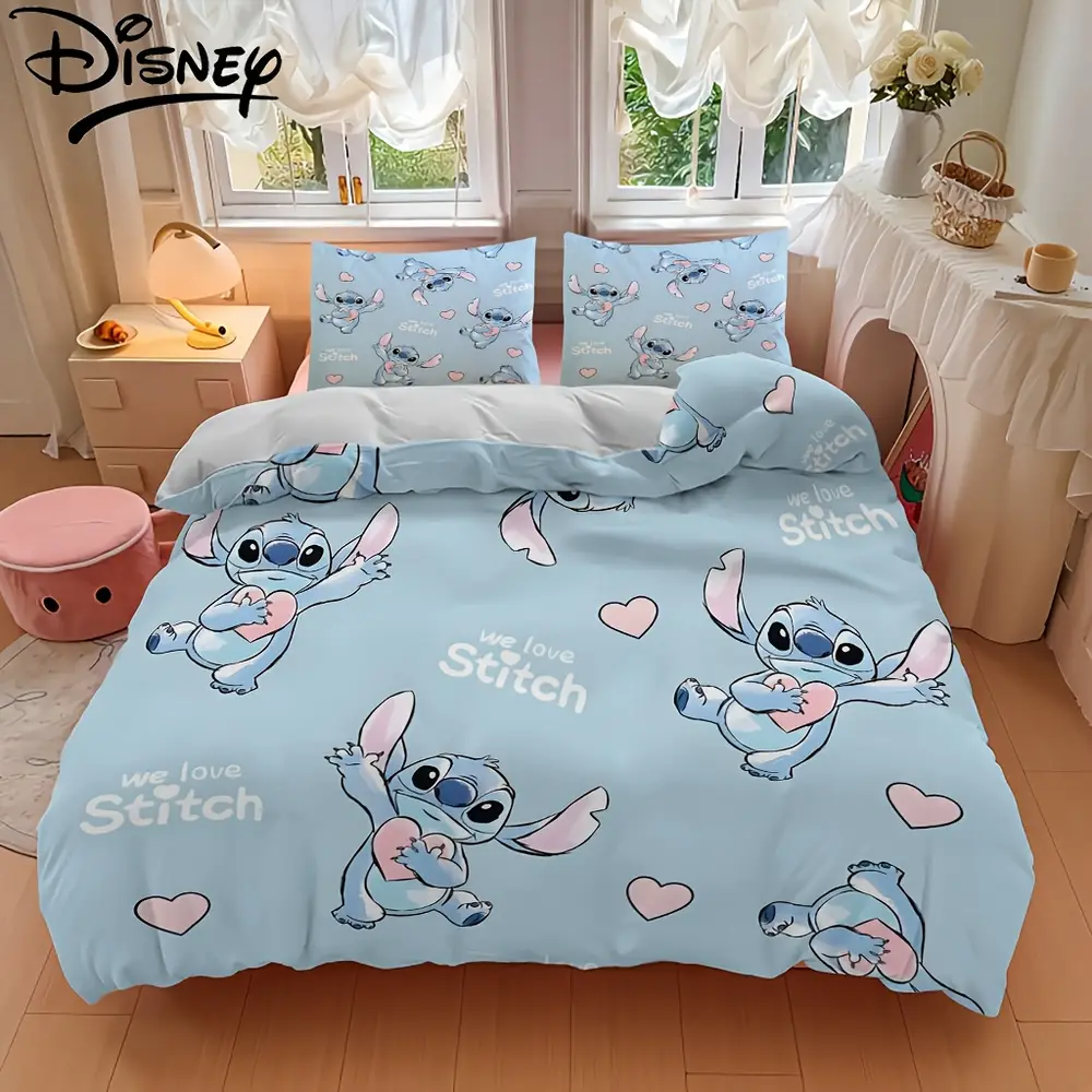 Housse de couette Stitch 3 pièces en polyester doux – thème anime lavable