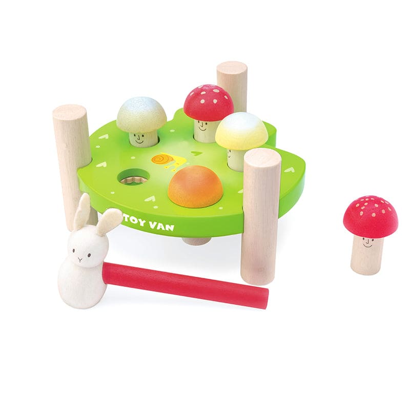 Peu répandu mais captivant, ce jeu d’éveil est à la fois ludique et instructif. Doté d’un plateau en bois comportant des orifices pour insérer les champignons et accompagné d’un marteau, ce jeu est souvent très apprécié par les jeunes débordant d’énergie. Il leur permet de canaliser leur enthousiasme en tapant sur les champignons qui tendraient être un peu trop relevés.