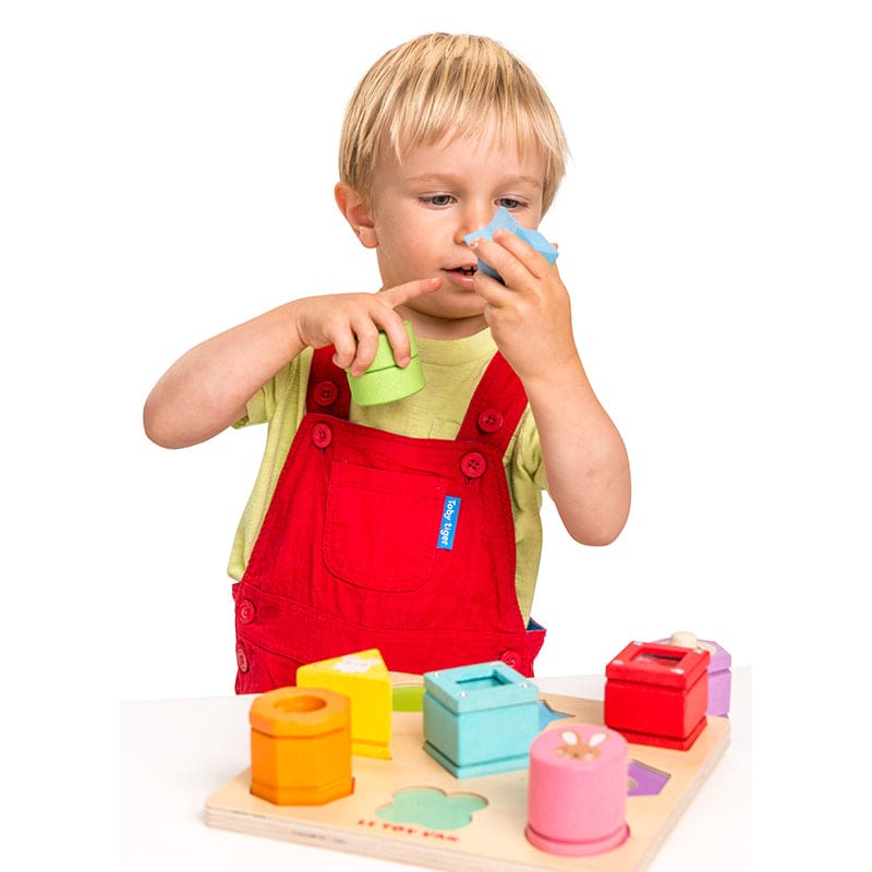 En plus de stimuler leurs sens, ce jouet sensoriel aidera les enfants à développer leur motricité fine. En effet, l’encastrement des différentes pièces dans le cadre en bois nécessite de la dextérité et de la réflexion. Chaque pièce ayant une forme unique, l’enfant devra faire un effort supplémentaire pour bien les placer.
