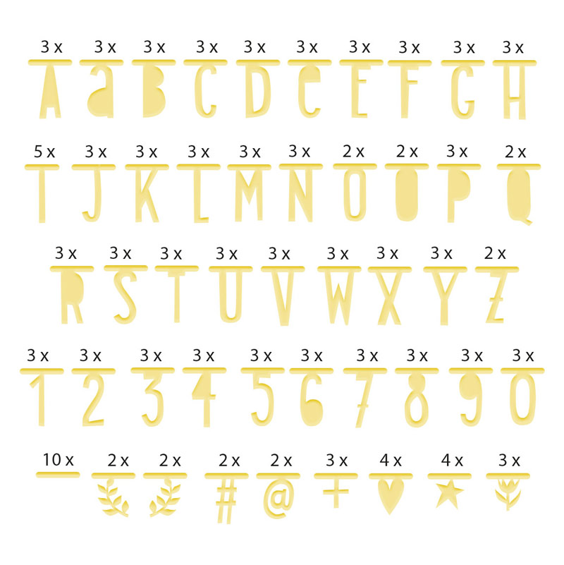 147 caractères dorés (alphabet, chiffres et symboles)