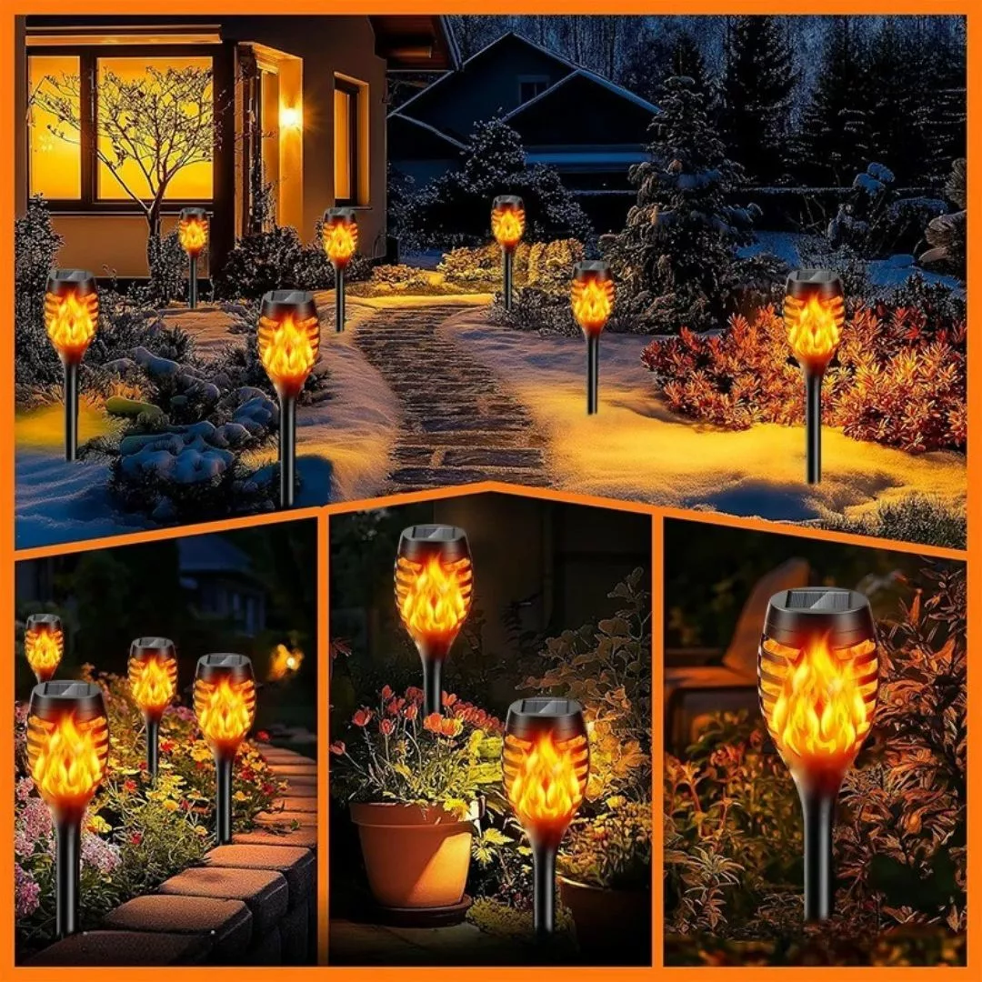 Lampe torche effet flamme LED solaire – Illuminez vos nuits avec élégance