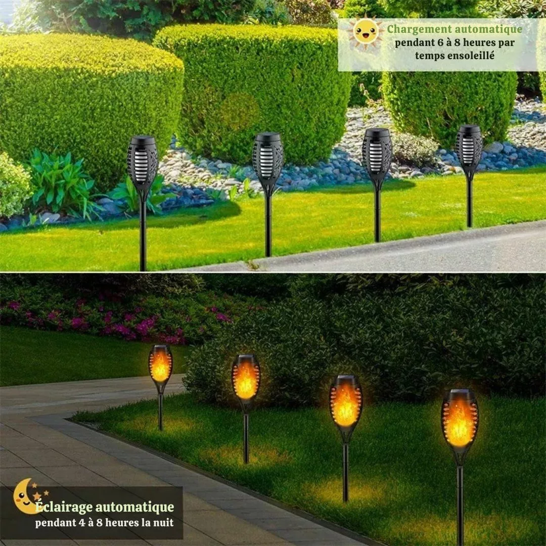 Lampe torche effet flamme led solaire – Ambiance chaleureuse extérieure, économique et sans électricité