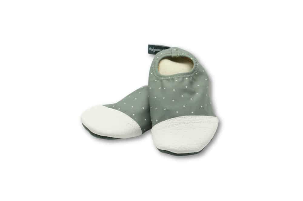 Conçus en collaboration avec Babyatoutprix, nous vous proposons une jolie paire de chaussons au motif pois, les préférés de Noé. Cette couleur sauge, très à la mode, conviendra avec toutes les tenues. Parfaits pour les petits comme les grands ! Fabrication française. À utiliser en intérieur et en extérieur : piscine, mer, sable, jardin, terrasse ! Leur petit plus : ils limitent les glissades sur surfaces sèches et mouillées ! Ils seront parfaits pour les premiers pas de bébé ! Aussi disponible en taille adulte.