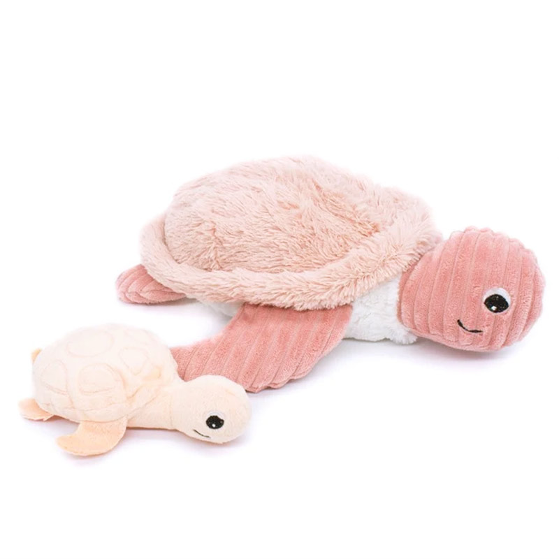 Les Ptipotos c’est une collection d’adorables duos de peluches mignonnes «parent-bébé» de la marque française Les Déglingos. Dans chaque «parent» se cache son petit. Ici, avec les tortues, c’est dans la carapace (qui se referme grâce à un velcro) que se blottit le bébé. Avec leur texture toute douce et son rose tendre, ce duo d’animaux marins fera un chouette cadeau de naissance, de baby shower, d’anniversaire ou de Noël, tout particulièrement aux enfants passionnés par l’océan, la mer et ses créatures aquatiques. Plusieurs coloris disponibles.