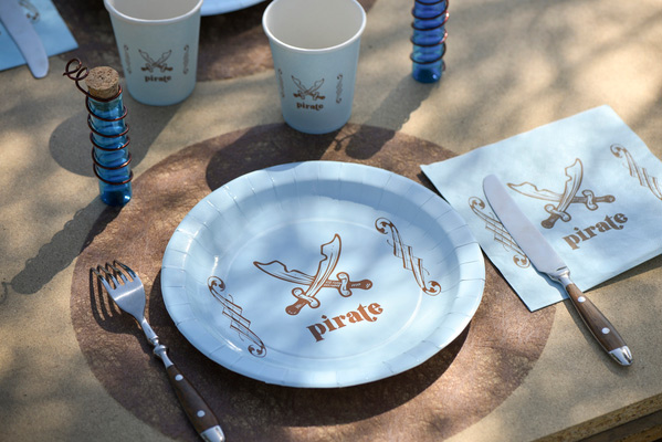 Chasses aux trésors, histoires et batailles entre terres et mers, les anniversaires sur le thème des pirates resteront intemporels et incontournables! Pour votre table, La Malle à Confettis vous propose ces jolies assiettes bleues ornées d’une illustration bronze. A la fois classiques et modernes, elles séduiront tous les petits garçons et feront de leur goûter la plus belle des aventures… Ces assiettes jetables seront également parfaites pour annoncer le sexe du bébé lors d’une baby shower spéciale petit gars! Lot de 6 assiettes en carton de 22,5 cm de diamètre