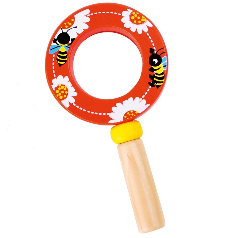 Pour y voir clair, rien de mieux que cette superbe loupe en bois. Les motifs d´animaux colorés laissent deviner ce que l´on pourra voir bien mieux à travers le verre grossissant. Fourmis, araignées et escargots deviennent des géants pour les enfants à travers cette loupe. Surtout, n´ayez pas peur !