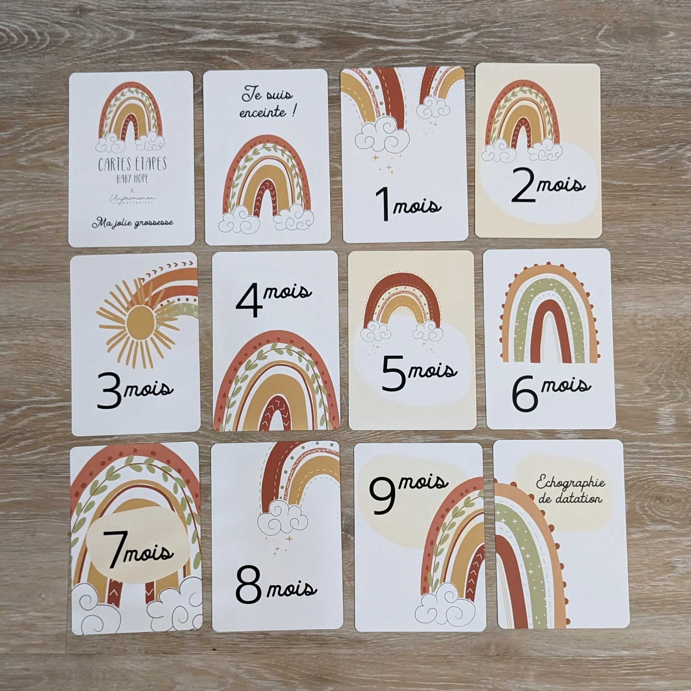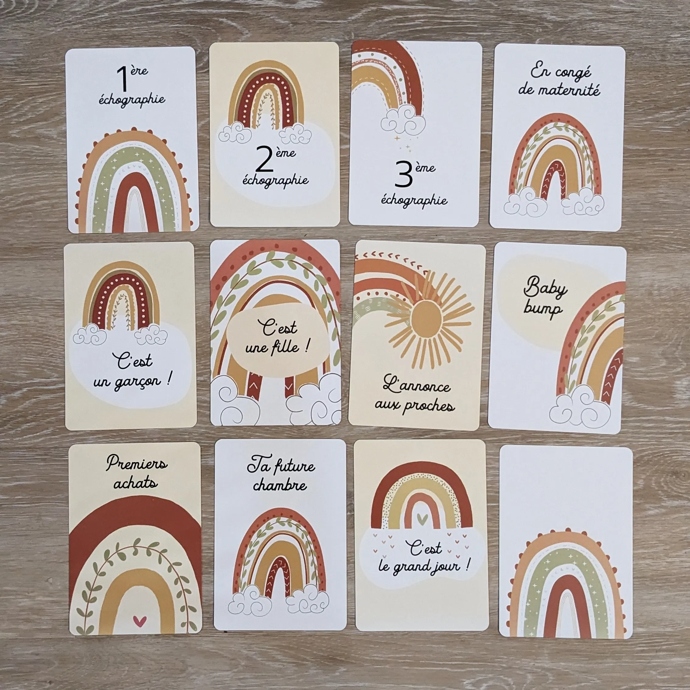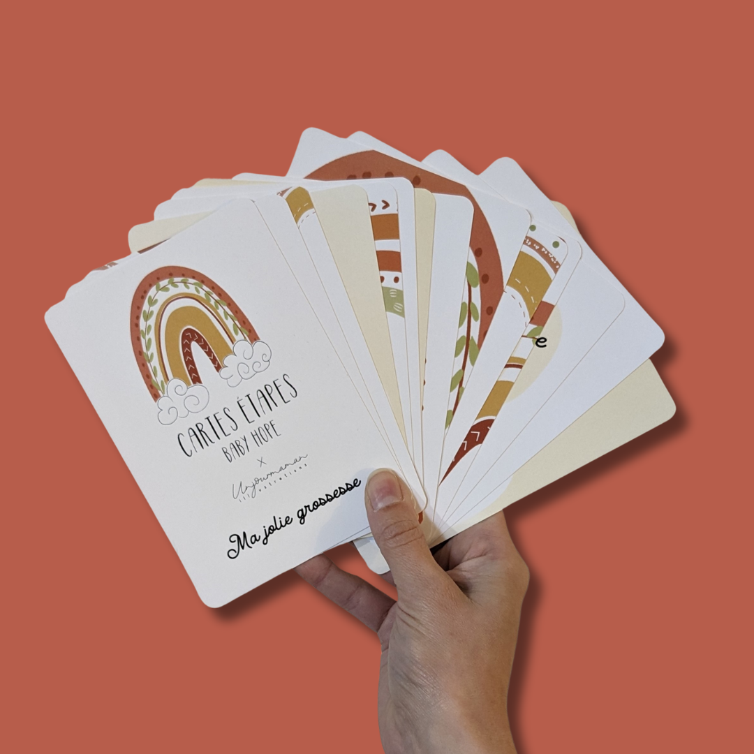 Il est possible de commander des cartes personnalisées en supplément, selon vos envies ou vos étapes de grossesse préférées.
