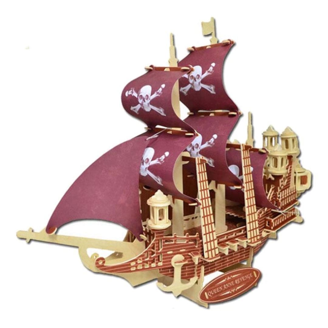 Explorez l’histoire en assemblant cette maquette en bois de galion pirate avec ses voiles ornées de têtes de mort.