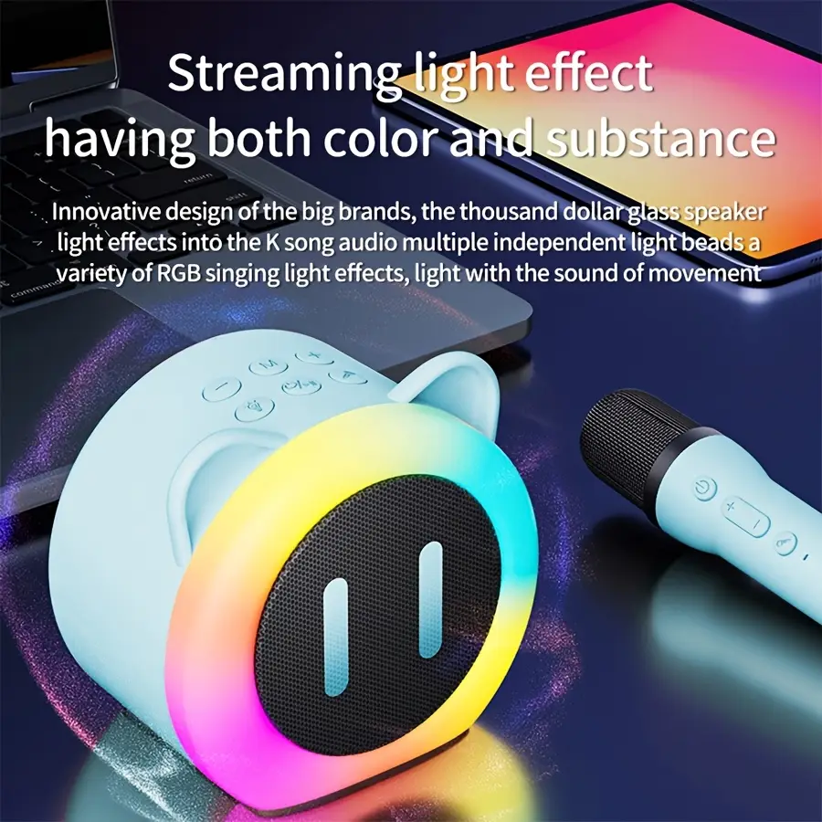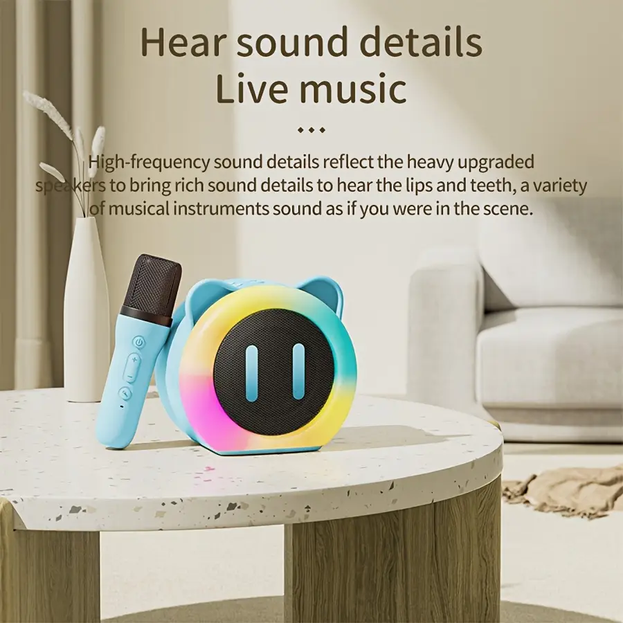 Mini karaoké portable avec haut-parleur et micro sans fil – LED et USB rechargeable