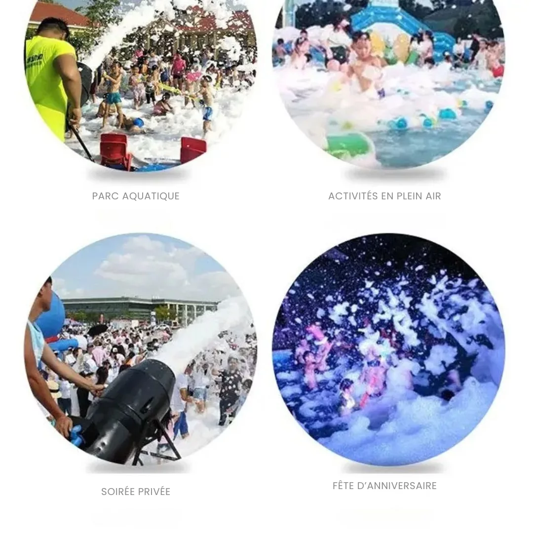 Compacte et légère, cette machine diffuse une mousse dense et onctueuse, idéale pour égayer vos événements en plein air tels que les anniversaires, les fêtes de famille ou les barbecues entre amis.
