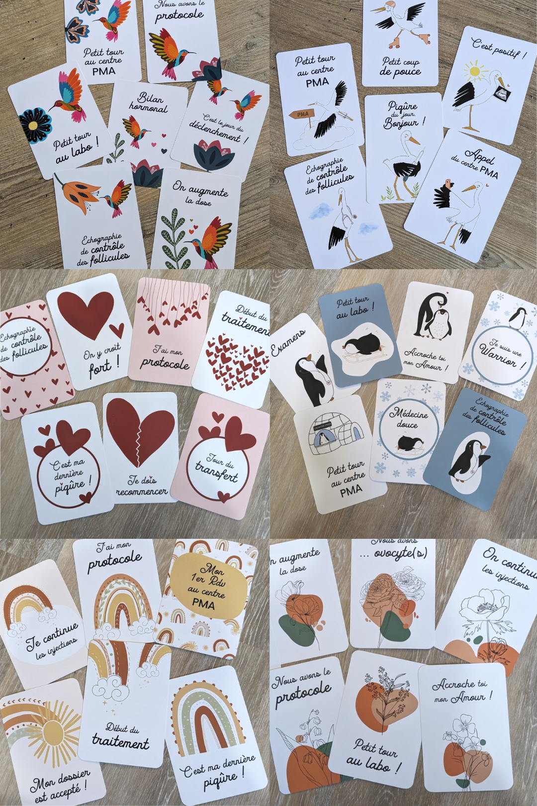 💕 Cartes étapes PMA – Insémination (lot de 32 cartes)