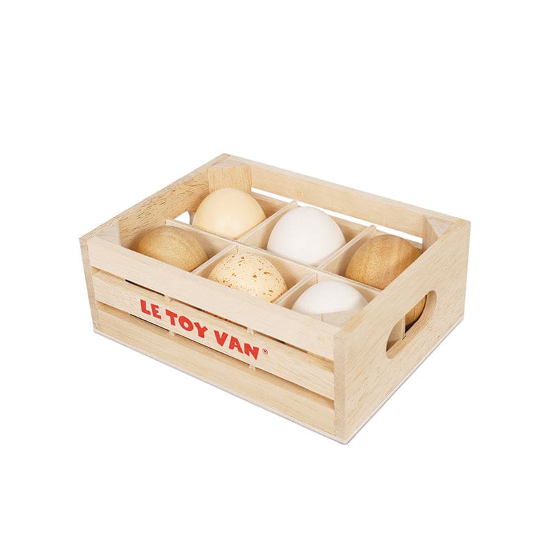 Cette cagette d’œufs est un jouet en bois idéal à exposer sur le stand pour les mettre en avant. Elle permettra de jouer à la marchande et de tenter de vendre vos produits frais à vos amis. Avec la caisse enregistreuse, vous pourrez collecter l’argent et envisager un jour d’investir dans une balance. Enfin, vous pouvez compléter ces œufs avec des produits laitiers, des viandes ou des poissons pour créer une offre diversifiée et cohérente. N’oubliez jamais que pour fidéliser votre clientèle, un accueil chaleureux et un sourire sont essentiels !