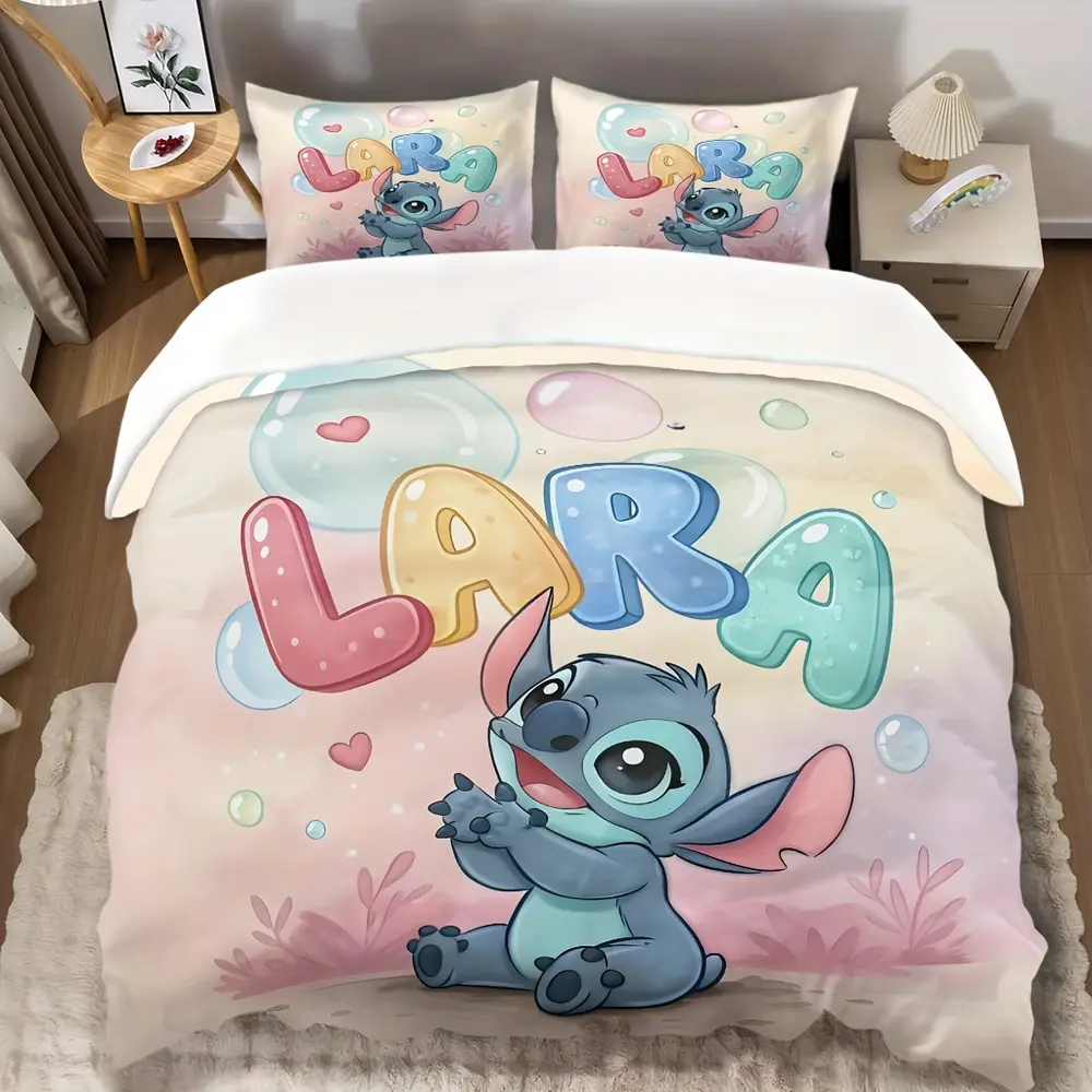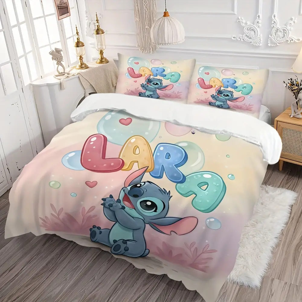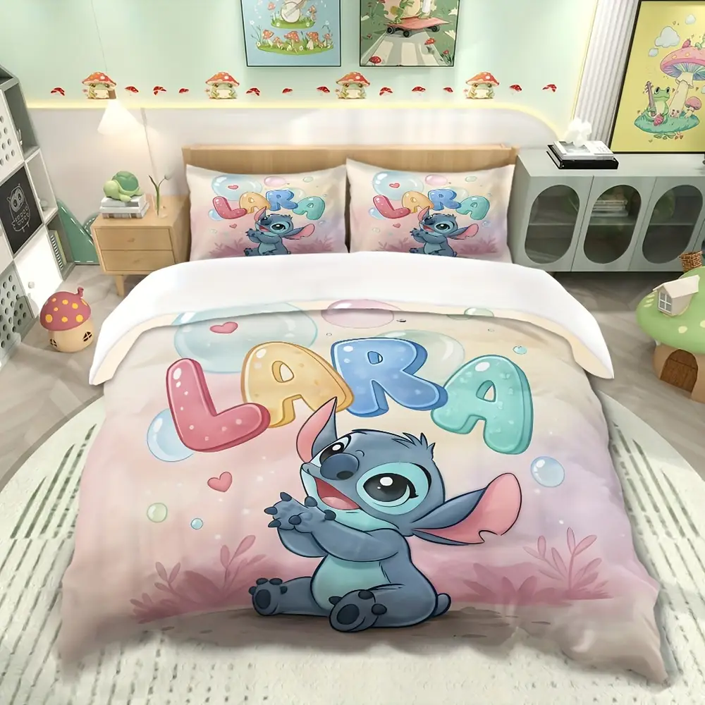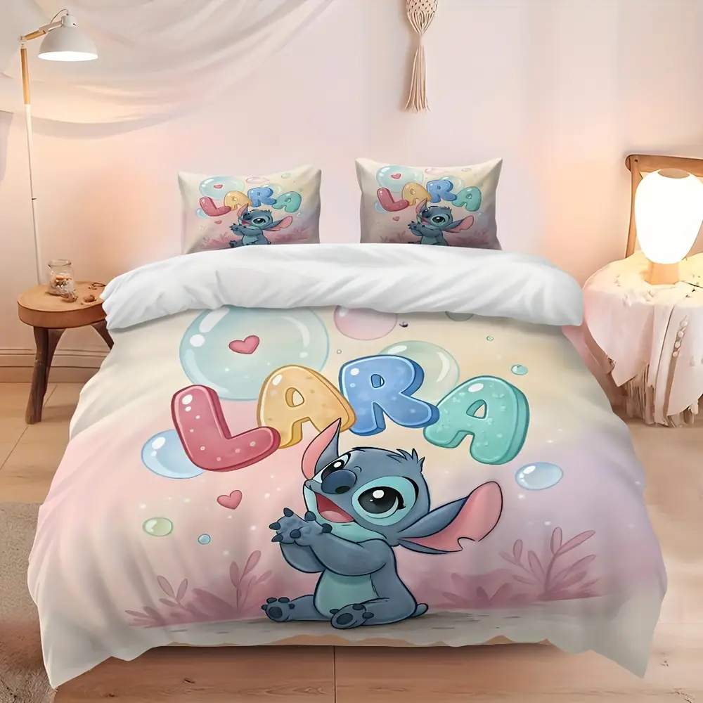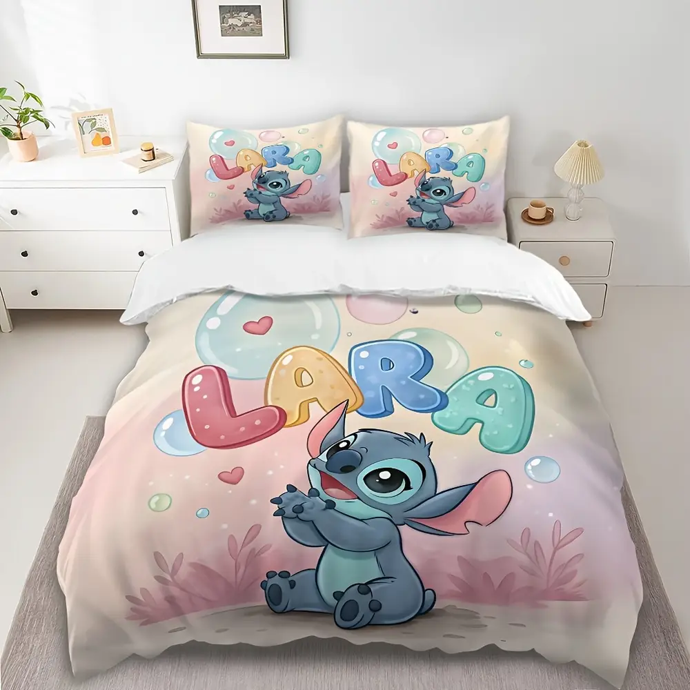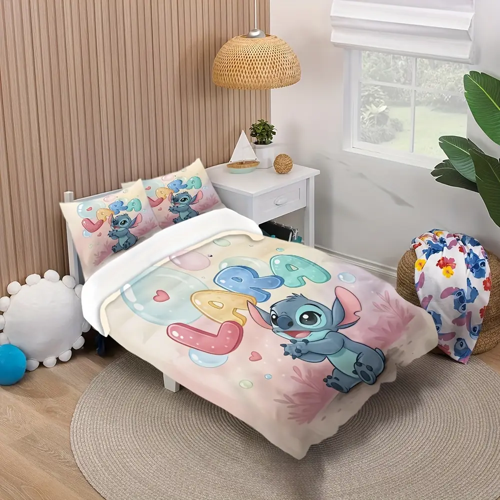 Parure de lit 3 pièces Lilo & Stitch – housse de couette douce et taies d’oreiller