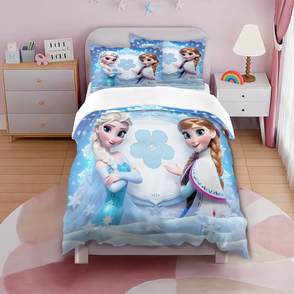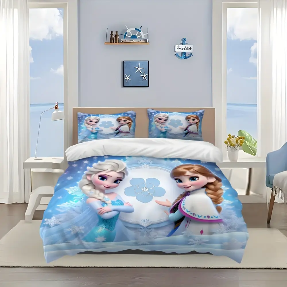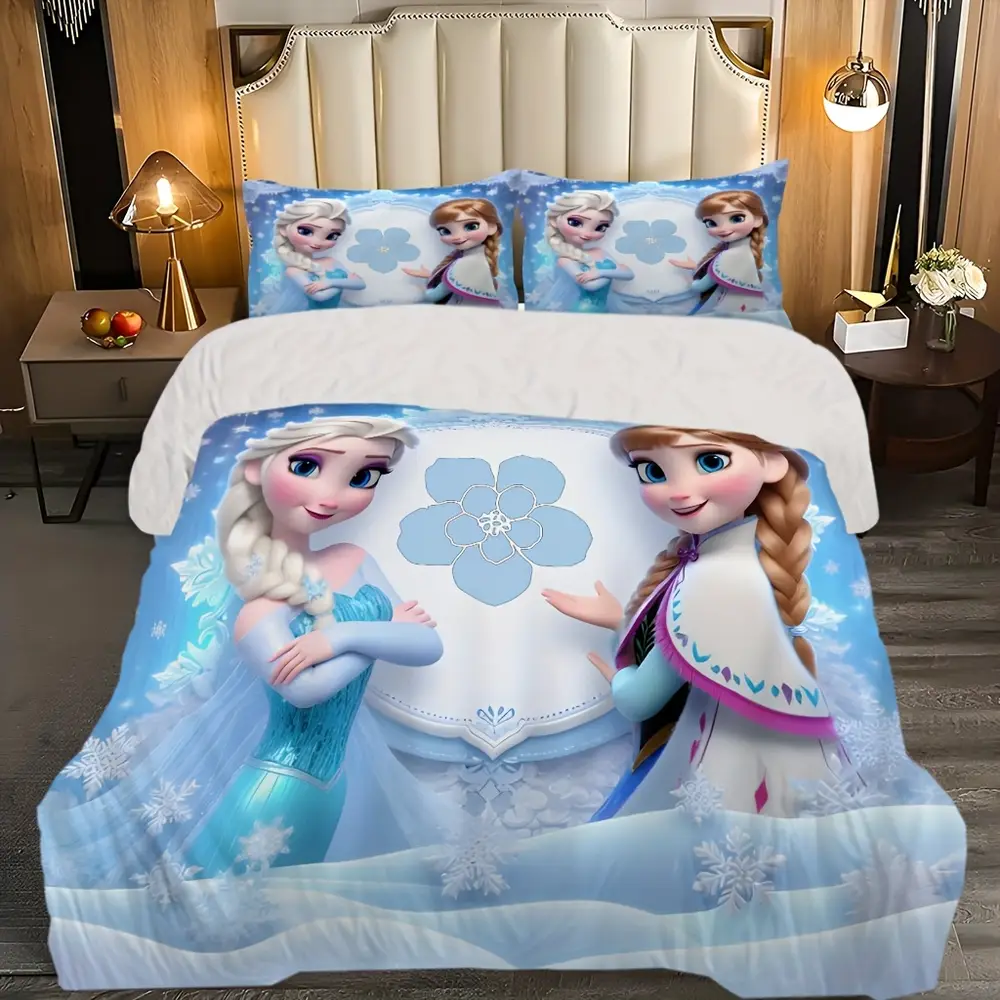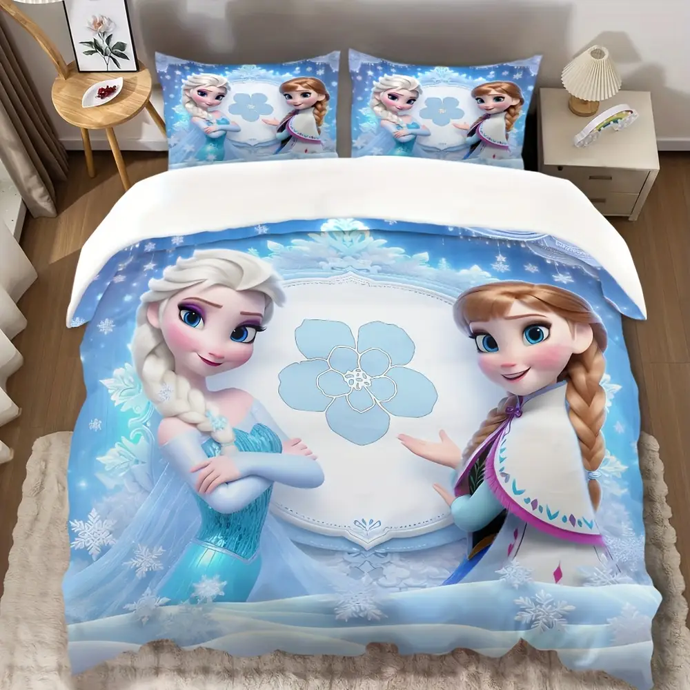 Parure de lit 3 pièces motif Reine des Neiges – housse douce + 2 taies
