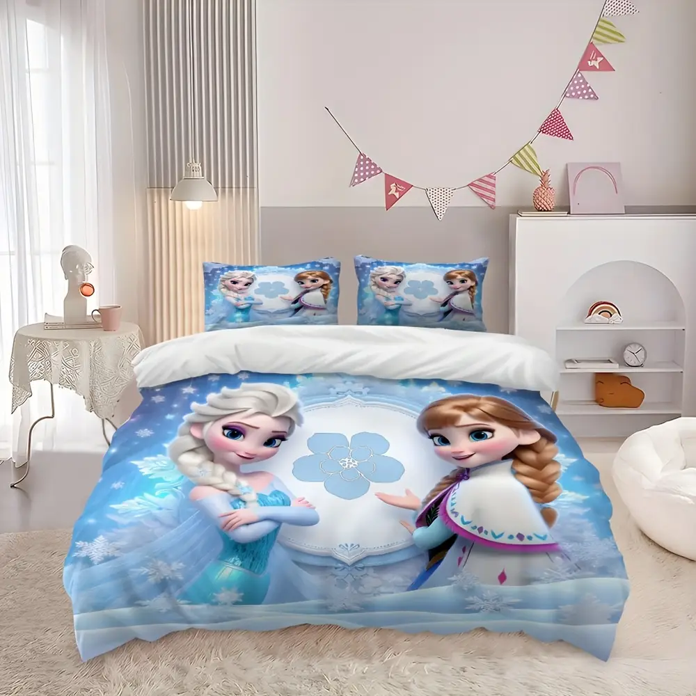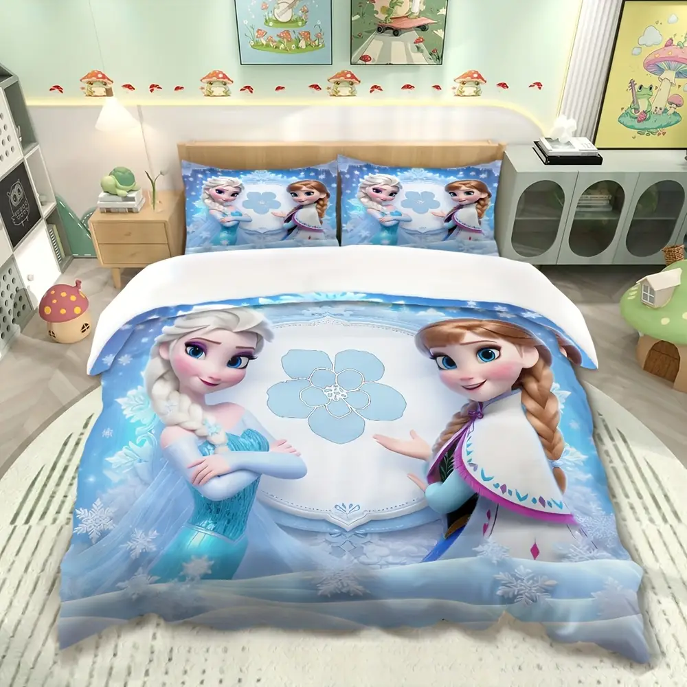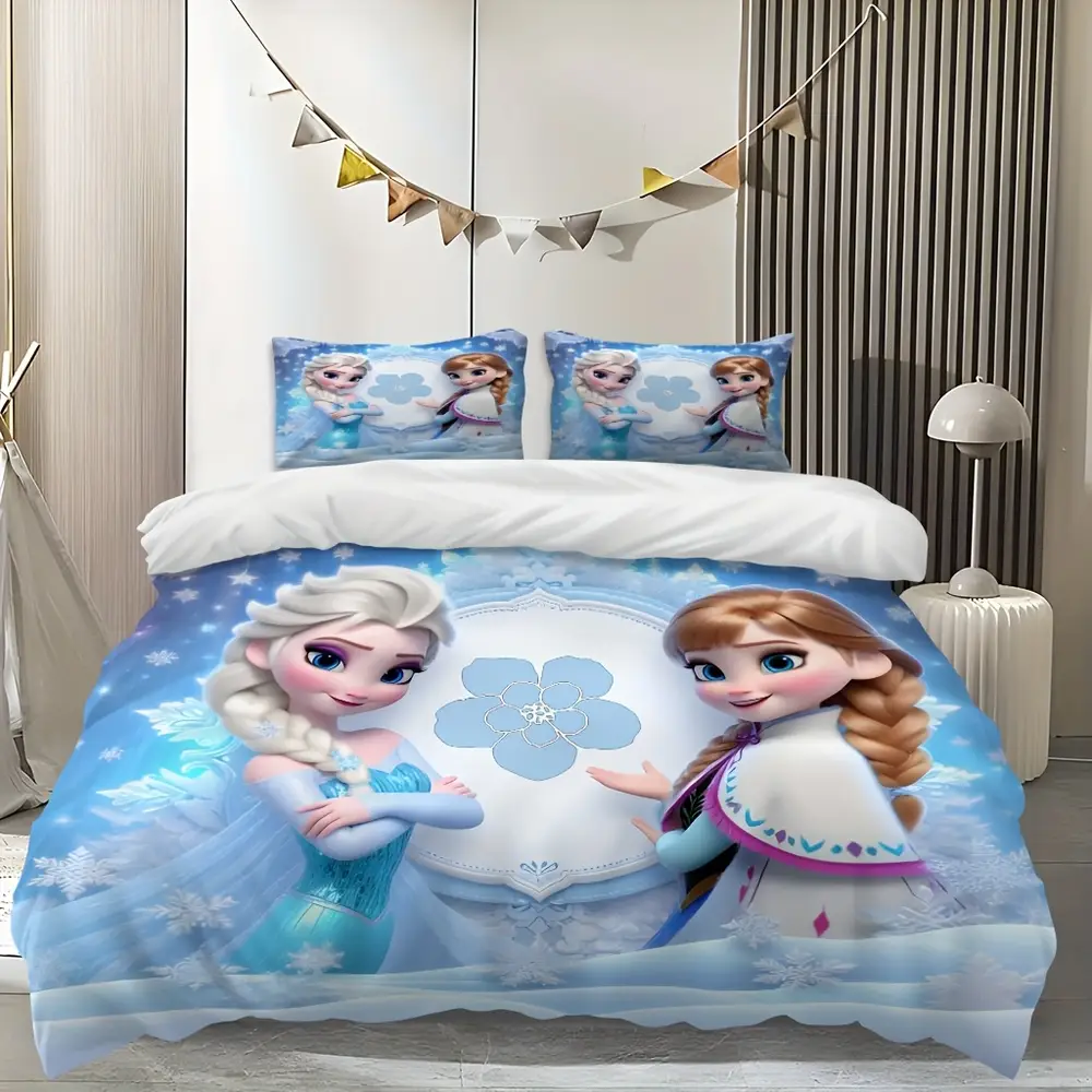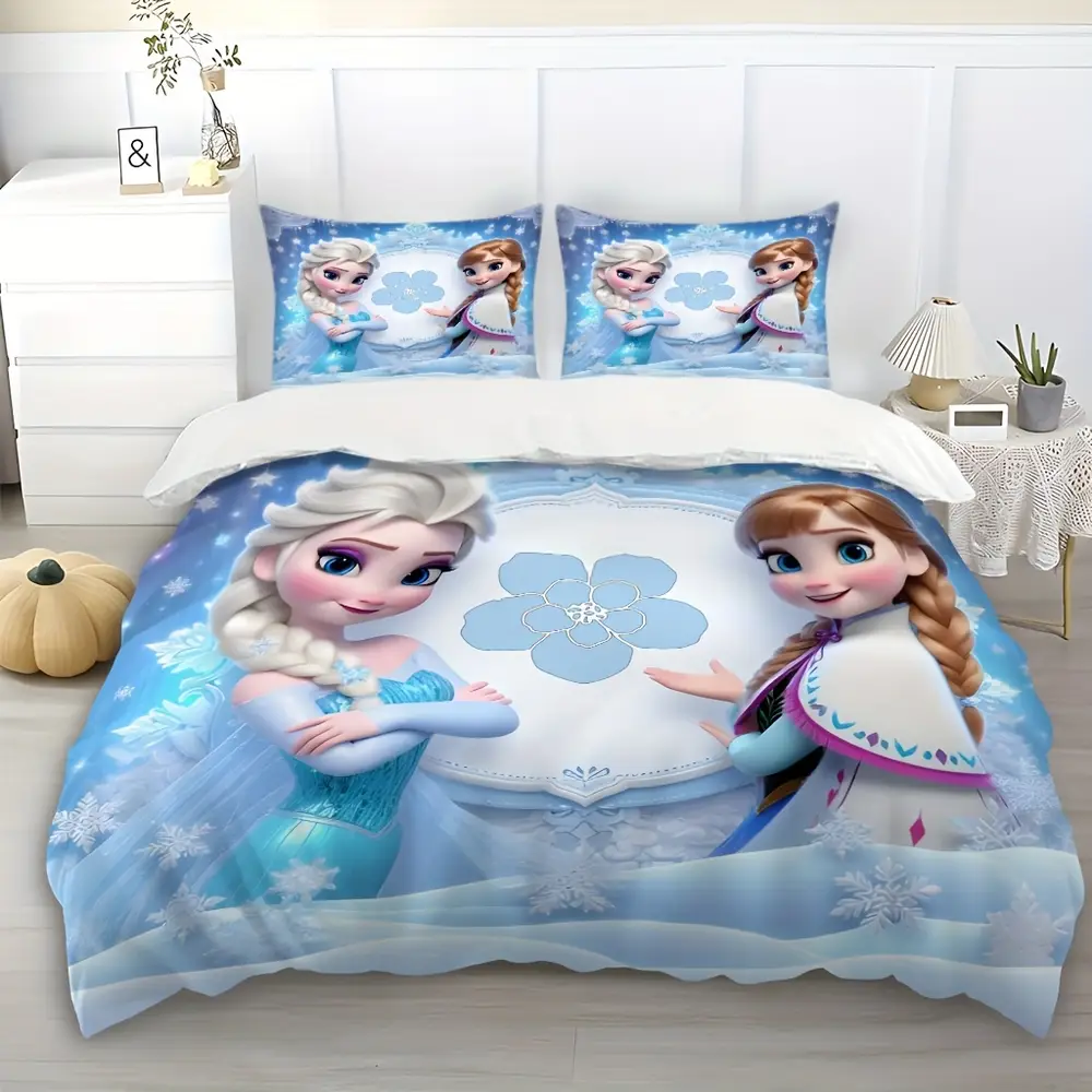 Parure de lit 3 pièces motif Reine des Neiges – housse douce + 2 taies