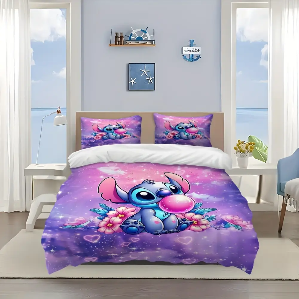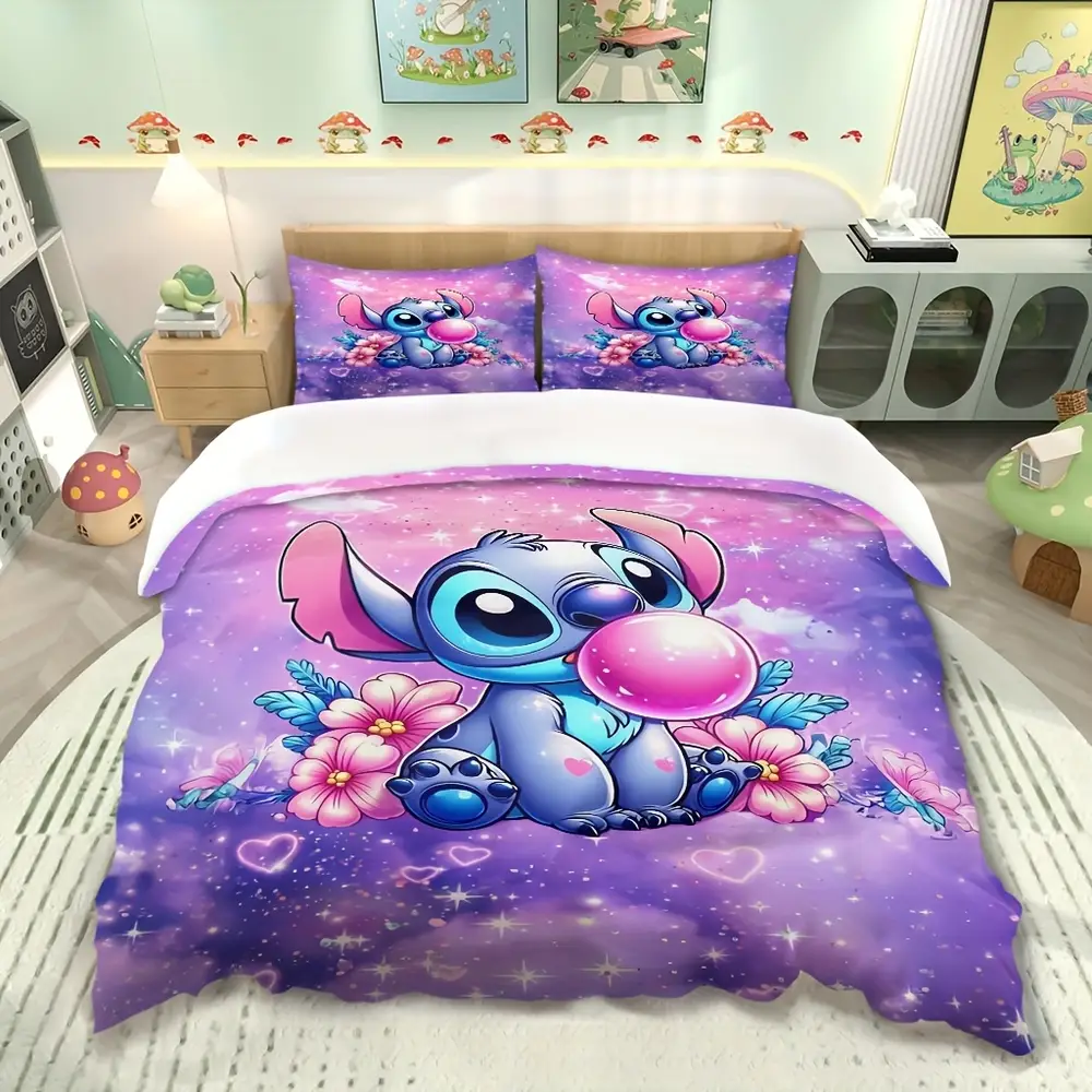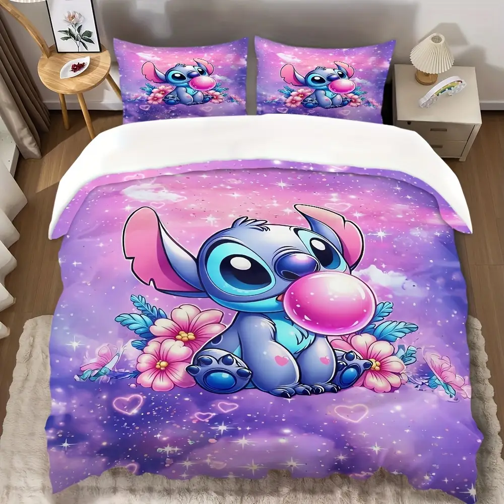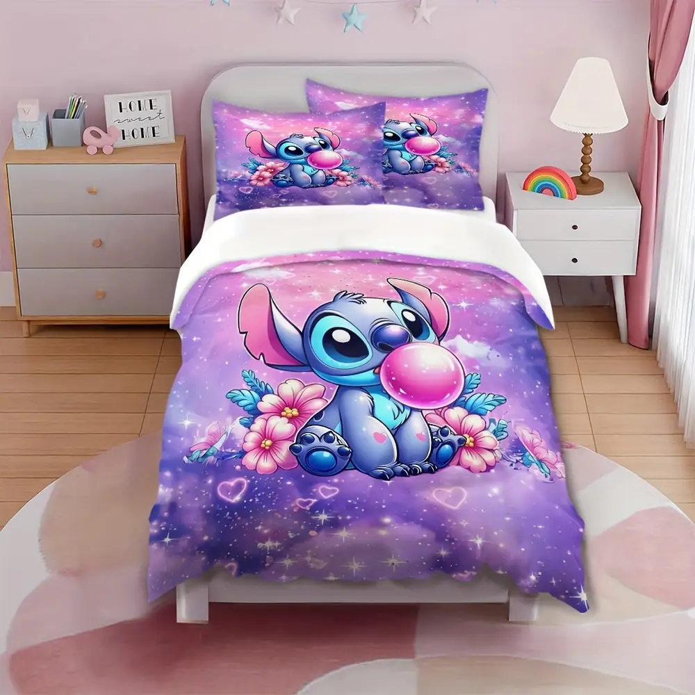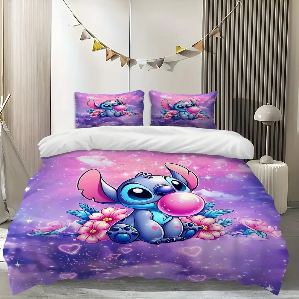 🛏️ Parure 3 pièces en dessin animé Stitch 🌸 Motifs vifs et colorés, fleurs et étoiles 🚚 Expédition sous 24h/48h 🎉 30 jours Satisfaite ou Remboursée