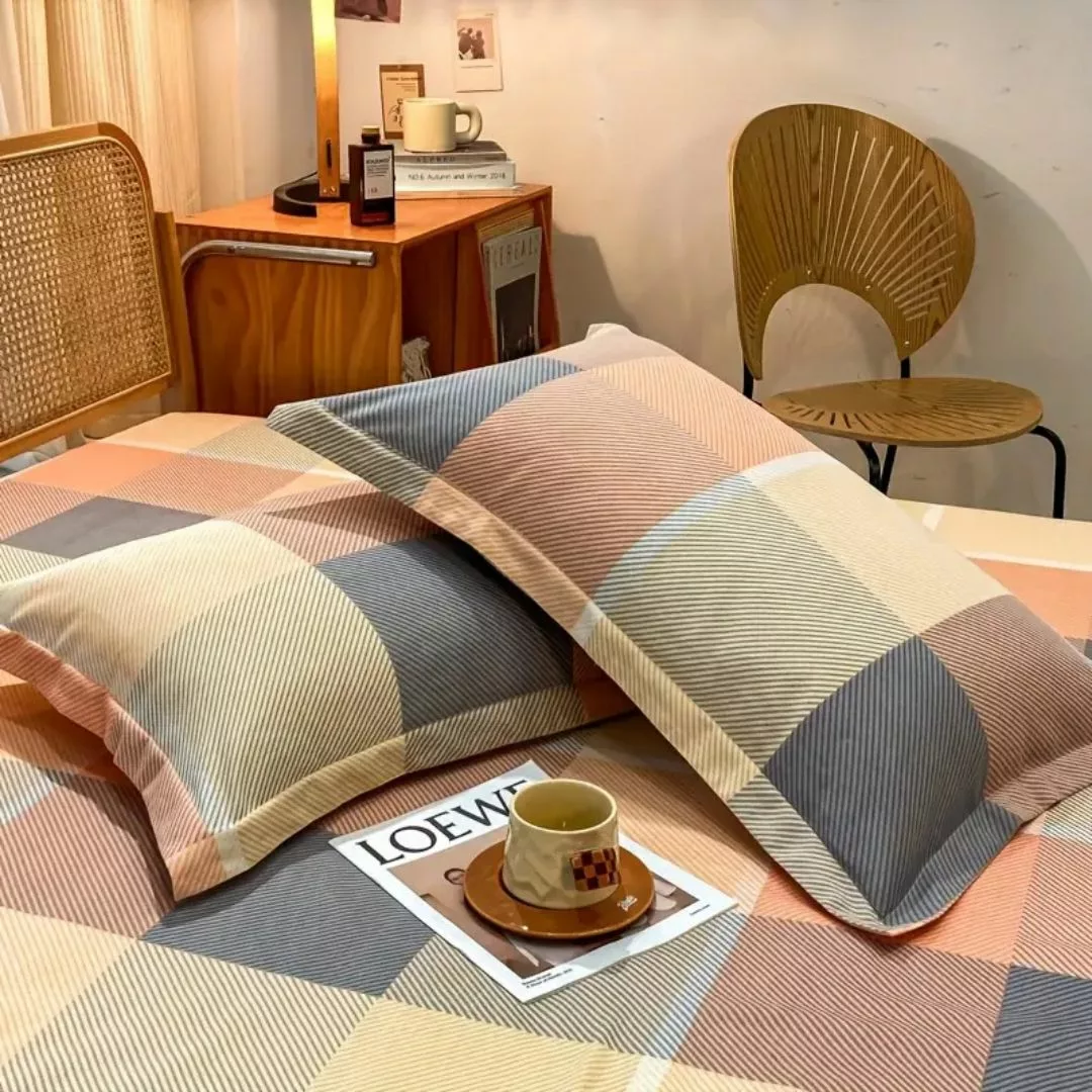 Parure de lit à carreaux rétro doux – Un retour à l’élégance vintage