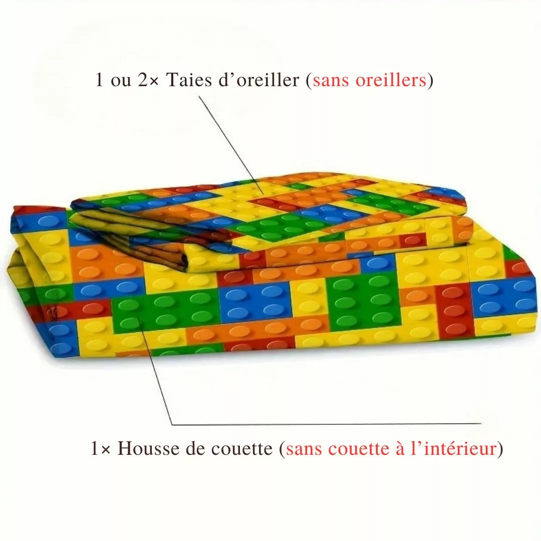 Parure de lit briques de construction colorées – Univers ludique et créatif pour chambre d’enfant – Confort doux et amusant