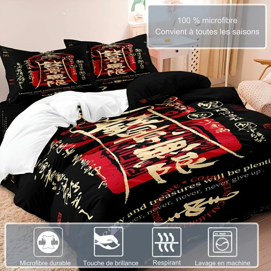 Parure de lit Calligraphie Asiatique Porte-Bonheur – Un Voyage Poétique dans votre Chambre