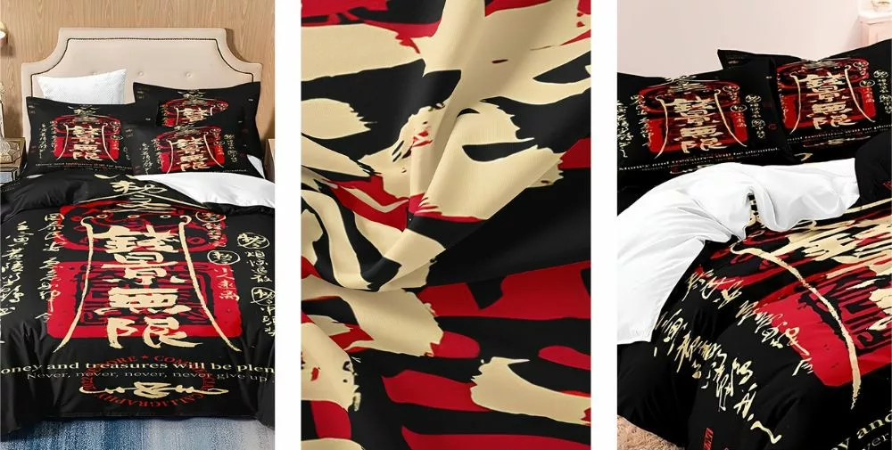 Parure de lit calligraphie asiatique porte-bonheur – Ambiance zen et paisible pour des nuits sereines