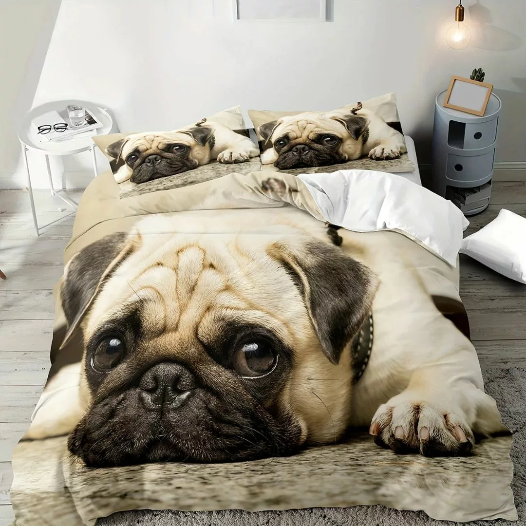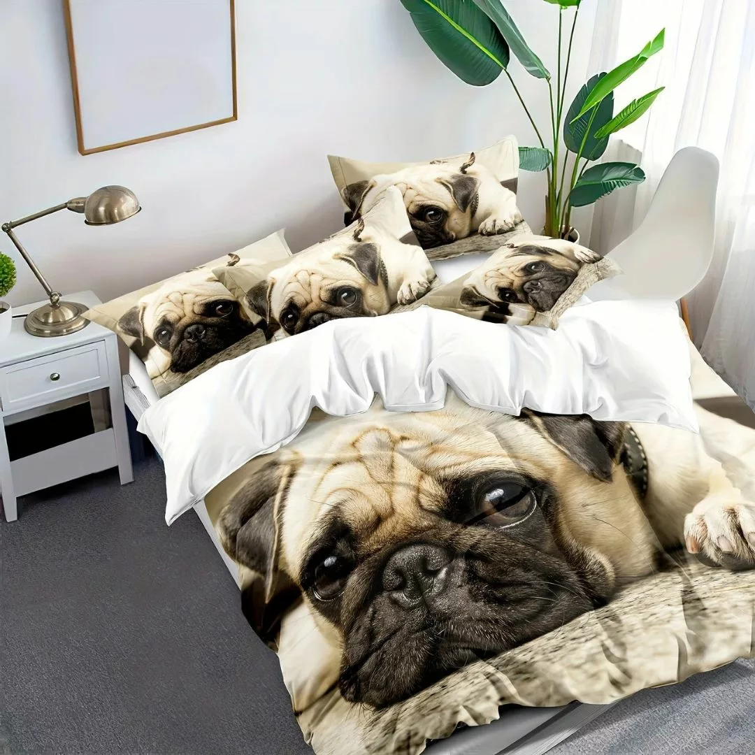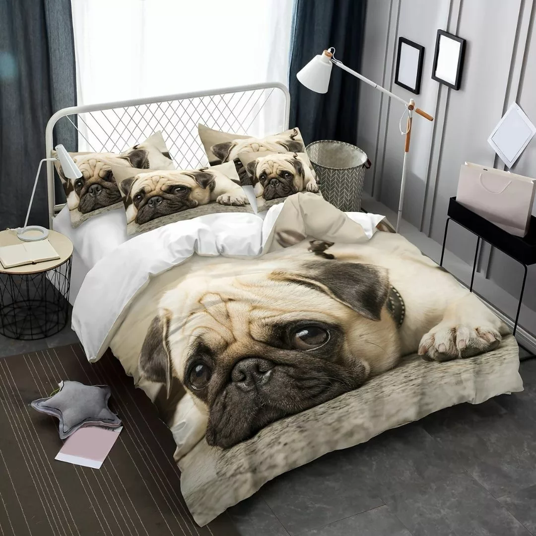 Parure de lit carlin regard attendrissant – Style unique pour les amoureux des chiens – Douceur et confort garantis