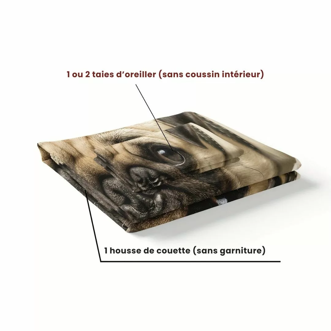 🛏️ Motif adorable avec un carlin au regard attendrissant 💤 Tissu doux et agréable au toucher 🚚 Expédition sous 24h/48h 🎉 30 jours Satisfaite ou Remboursée