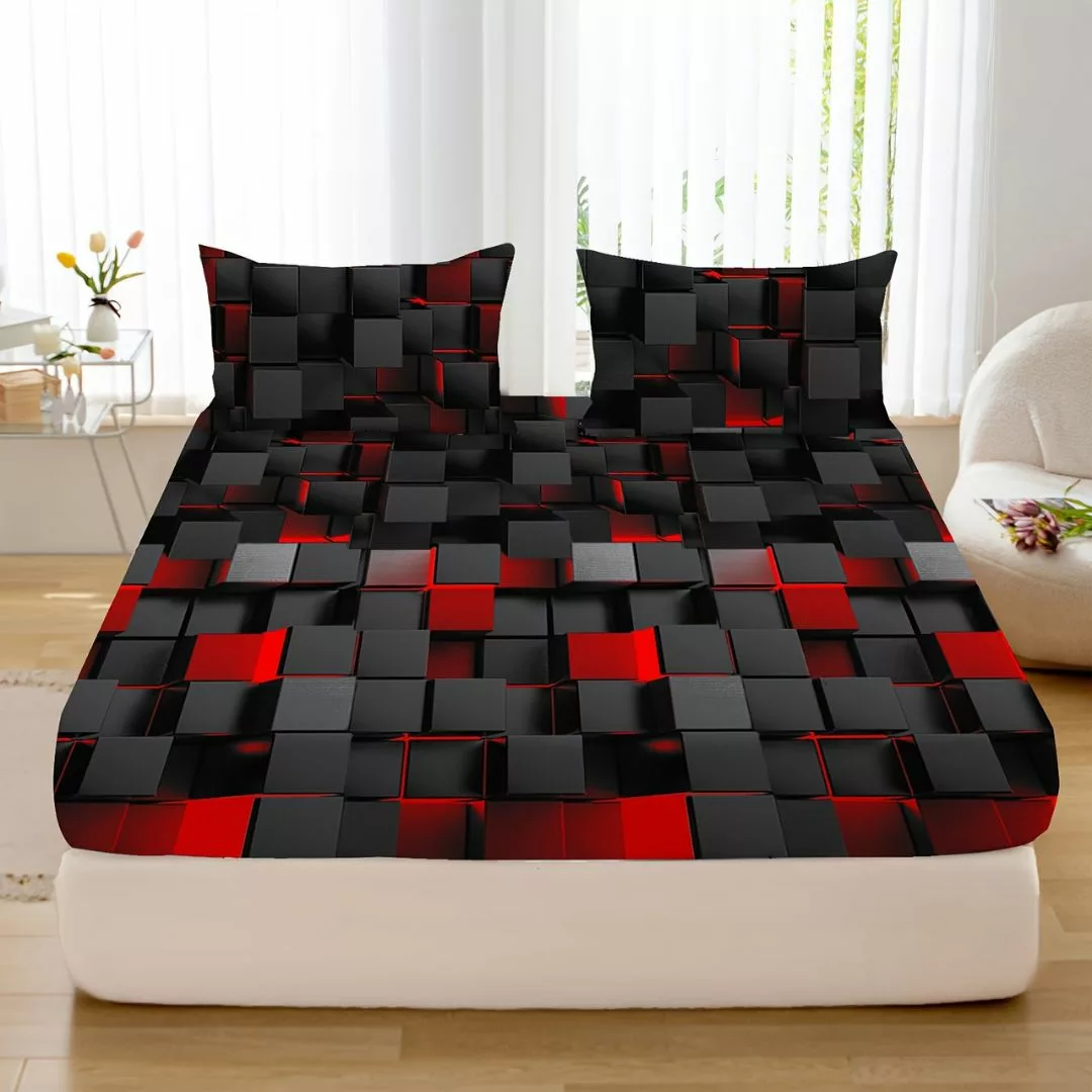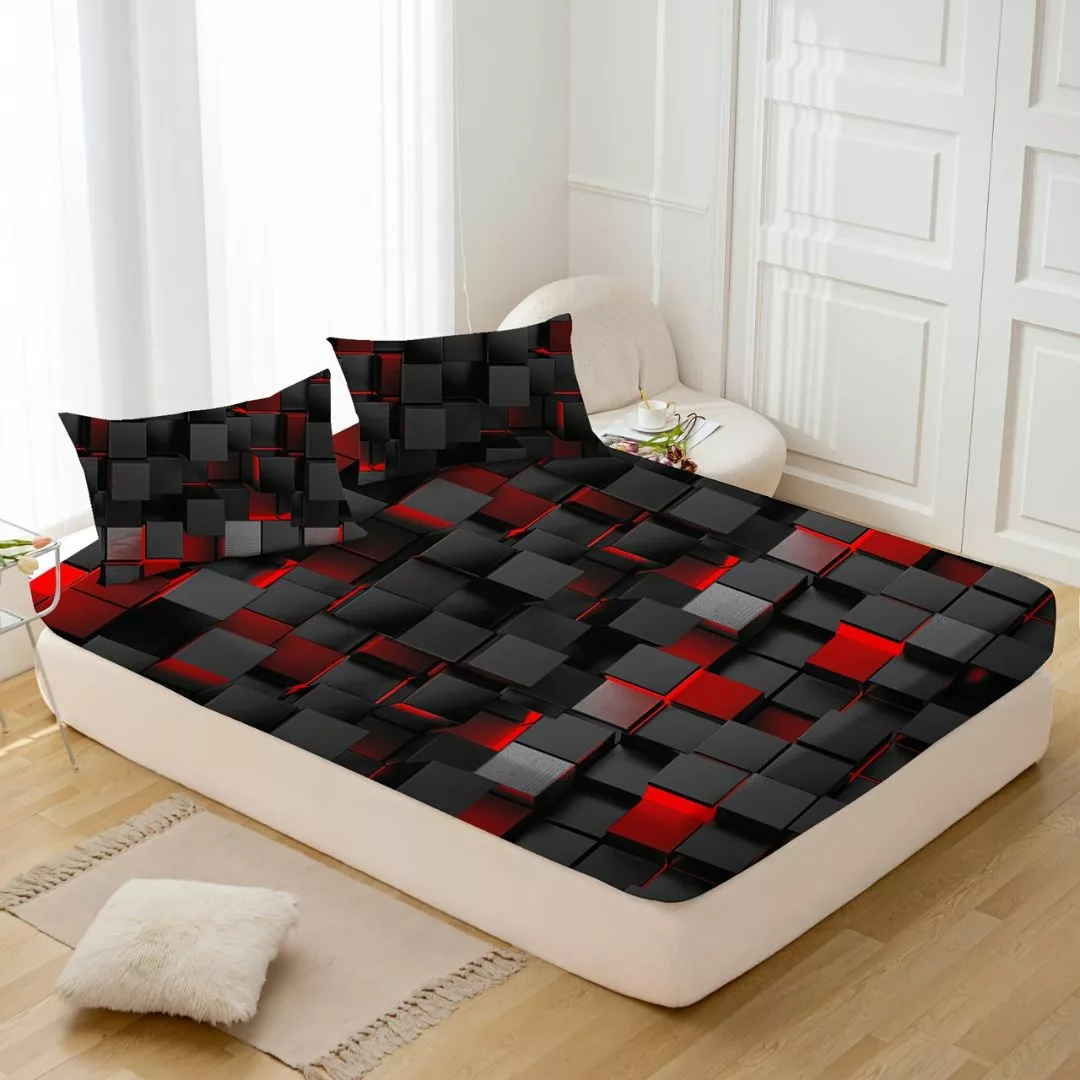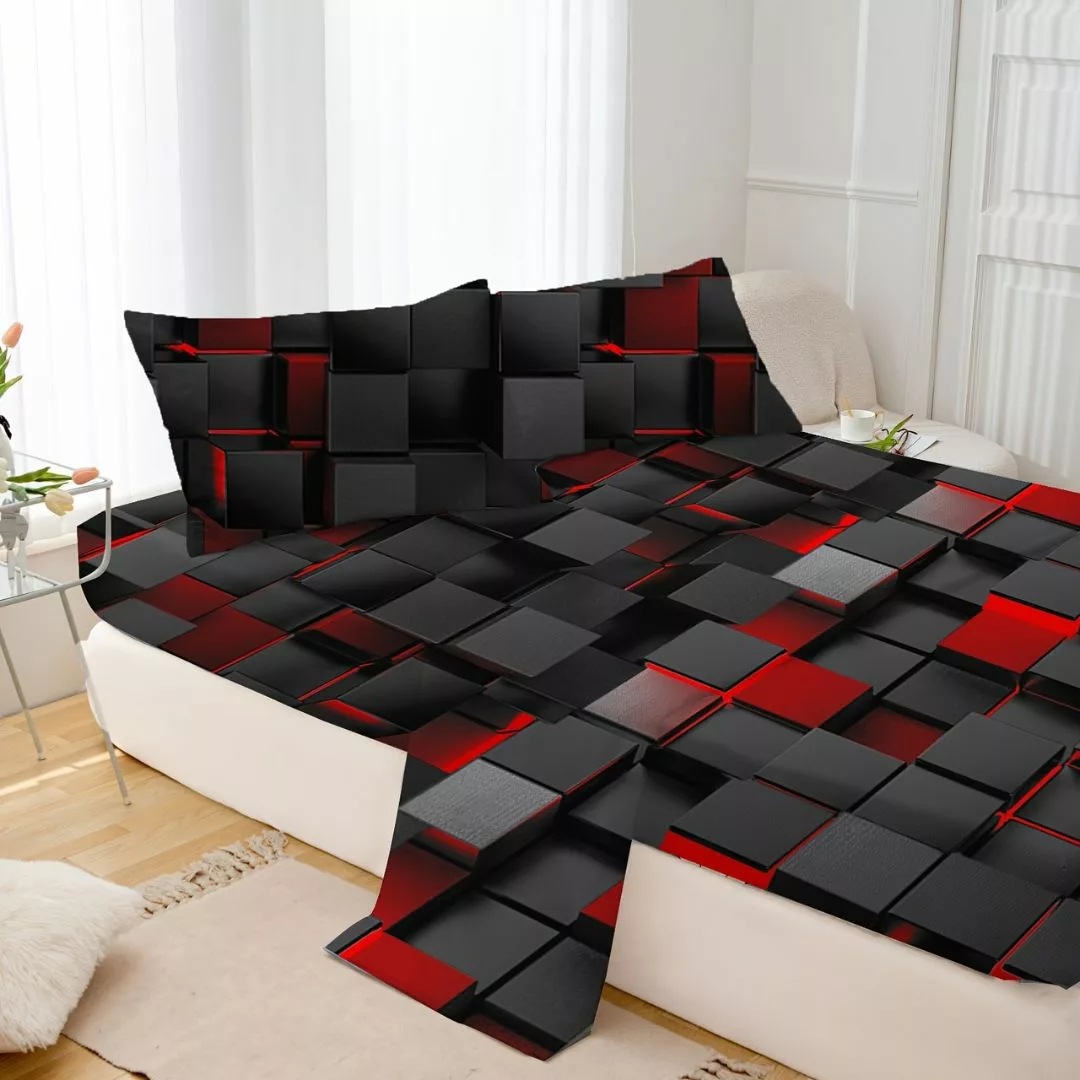Parure de Lit Cubes 3D Rouge Noir – Un design graphique au service du confort