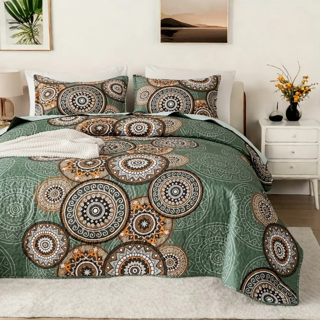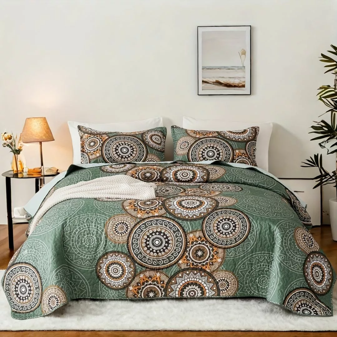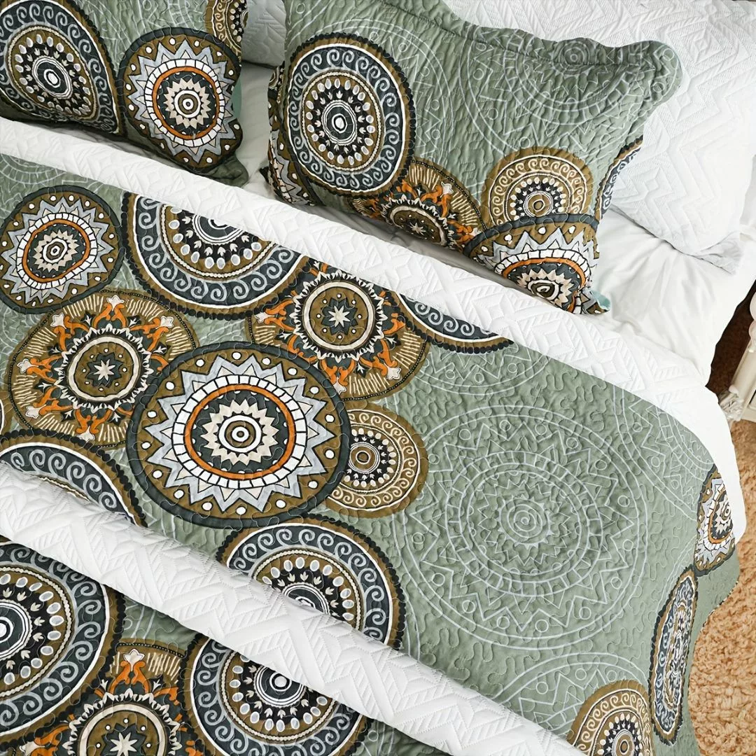 La Parure de Lit Imprimé Mandala Chic transforme votre chambre en un sanctuaire de sérénité et de style.