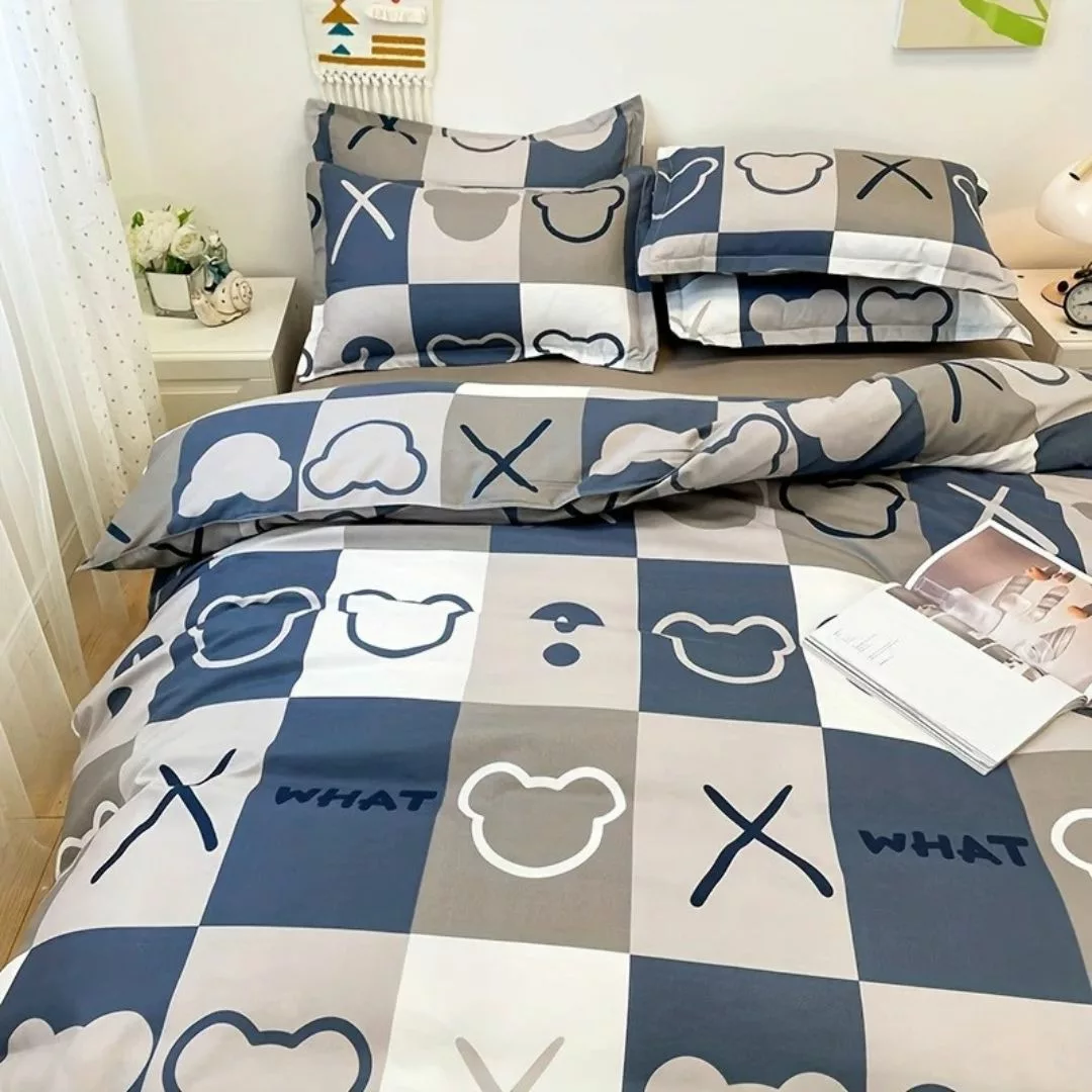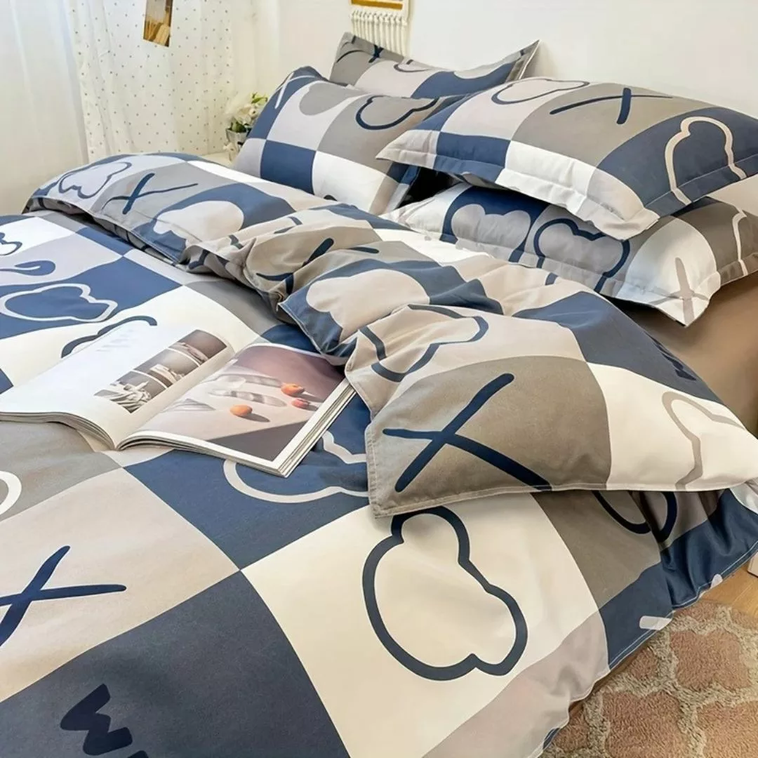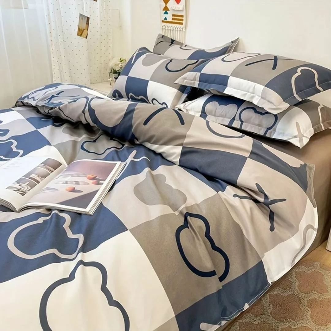 La Parure de lit motifs nounours modernes transforme votre chambre en un havre de paix, alliant douceur et style contemporain.