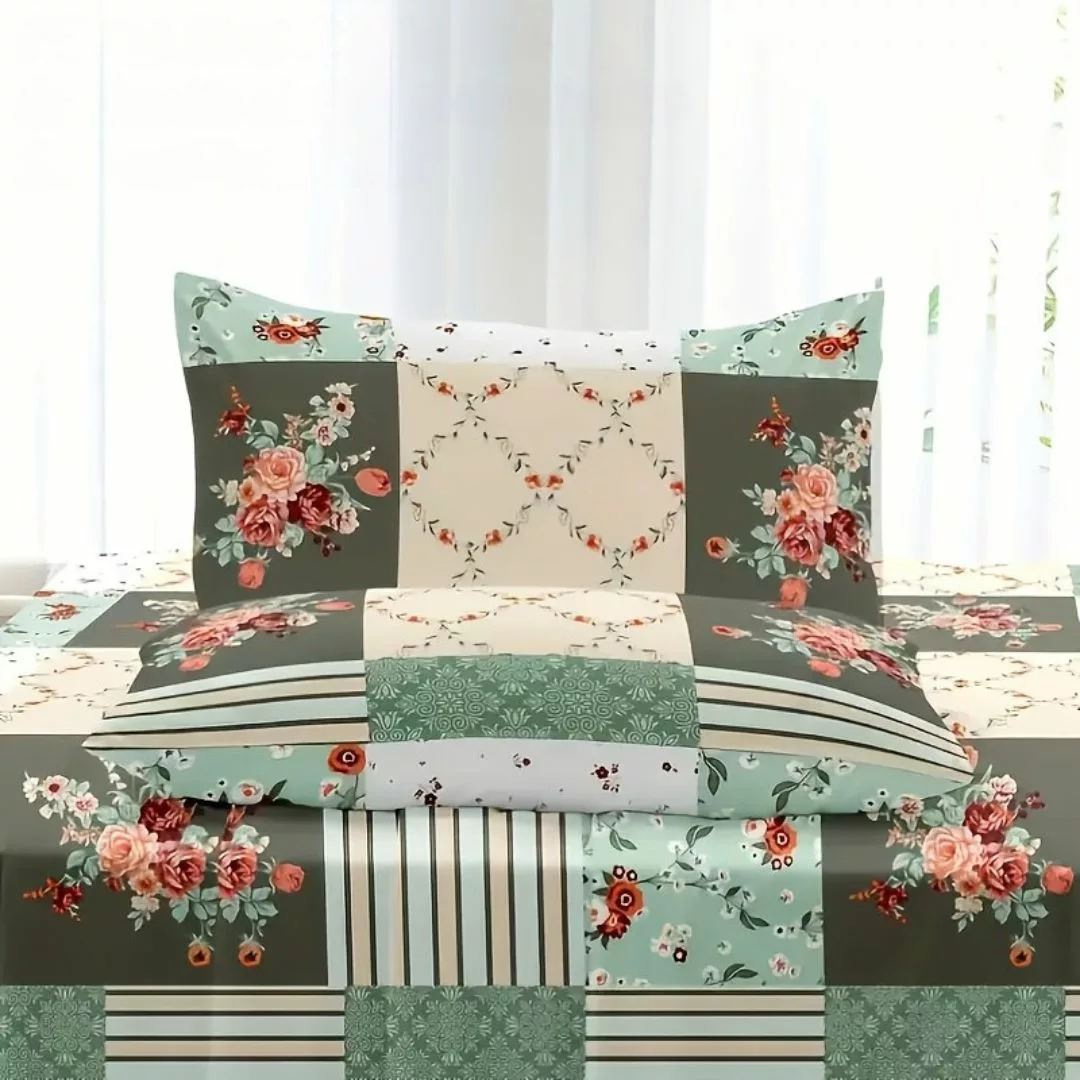 Parure de Lit Patchwork Floral Élégant – Laissez-vous Envelopper par l’Élégance et le Confort