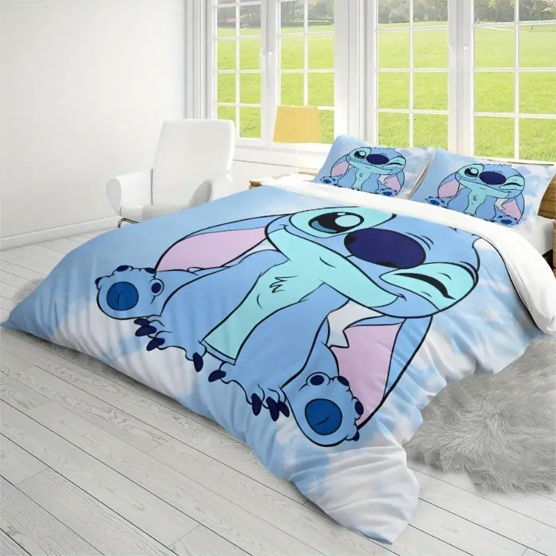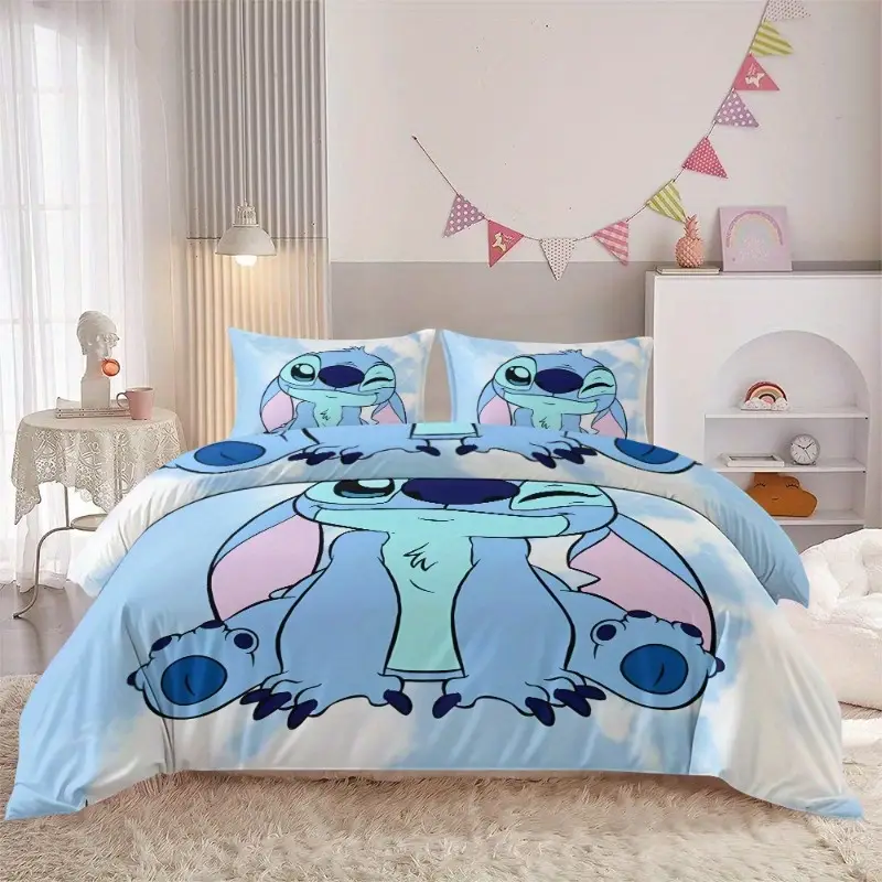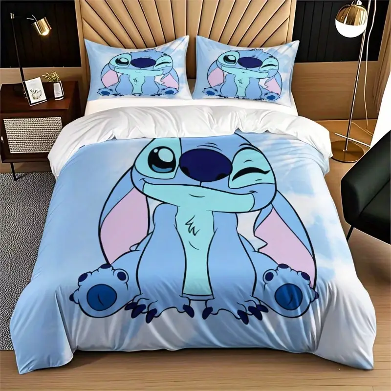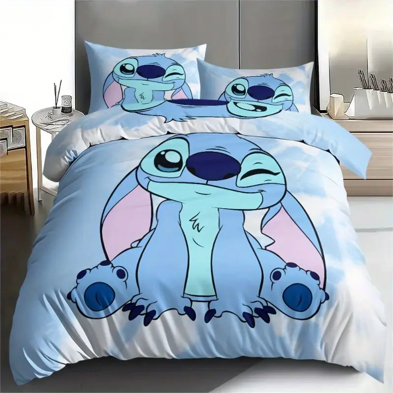 Parure de lit Stitch 3 pièces en microfibre douce – housse de couette et taies