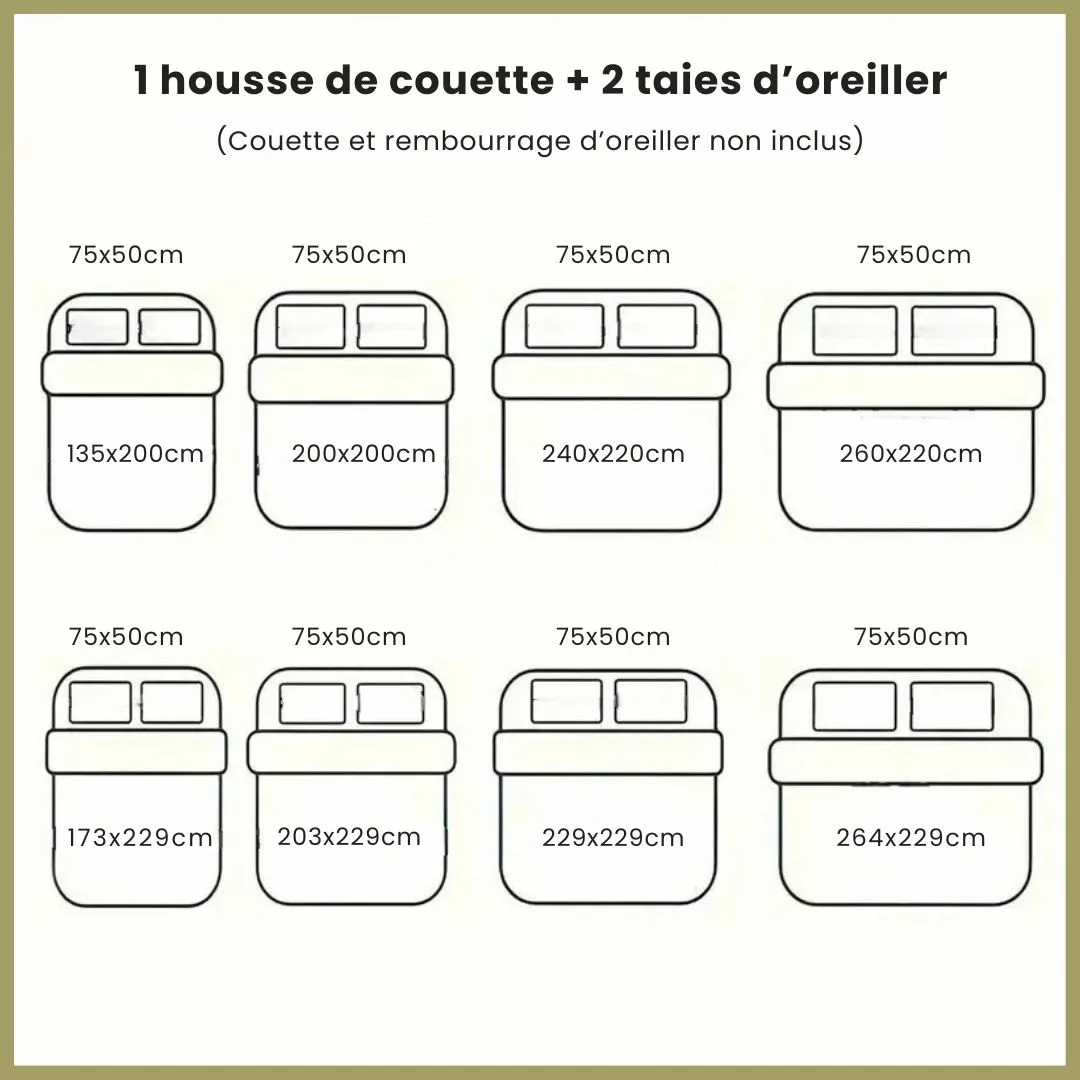 - Inclus : Ensemble comprenant une housse de couette et des taies d’oreiller assorties.