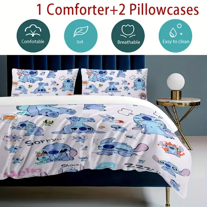 Parure de lit thème anime 2 ou 3 pièces en polyester doux – style manga moderne
