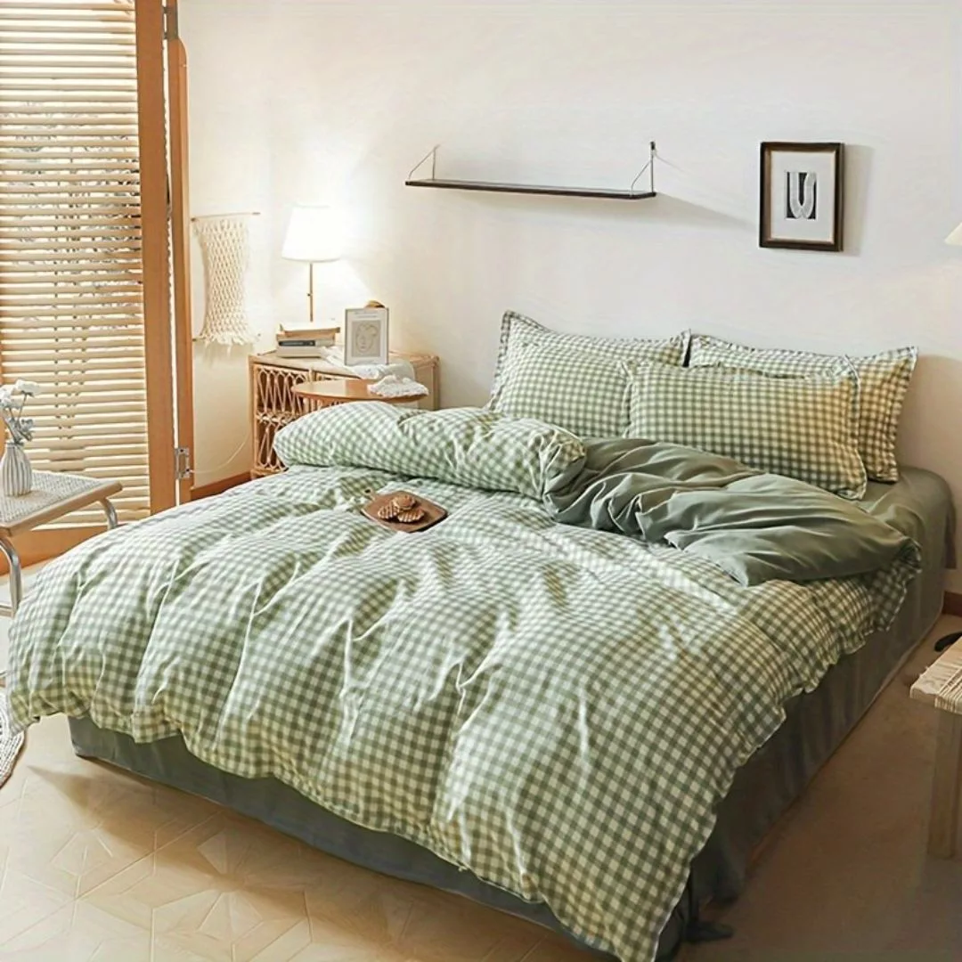 Parure de lit vichy style campagne – Ambiance cosy et champêtre pour des nuits paisibles et stylées