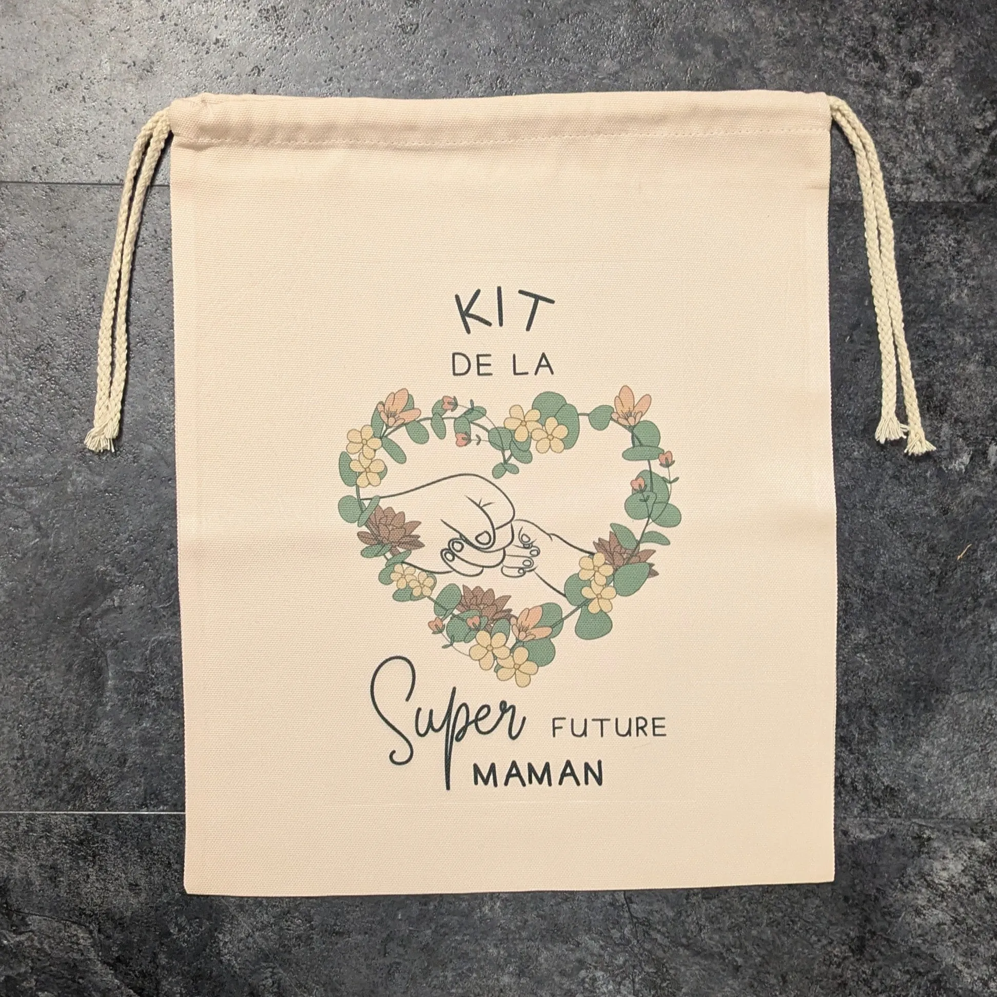 Pochon future maman 💫 en coton épais, pratique et réutilisable.Une jolie attention à offrir avant la naissance, pour un moment rempli de tendresse.