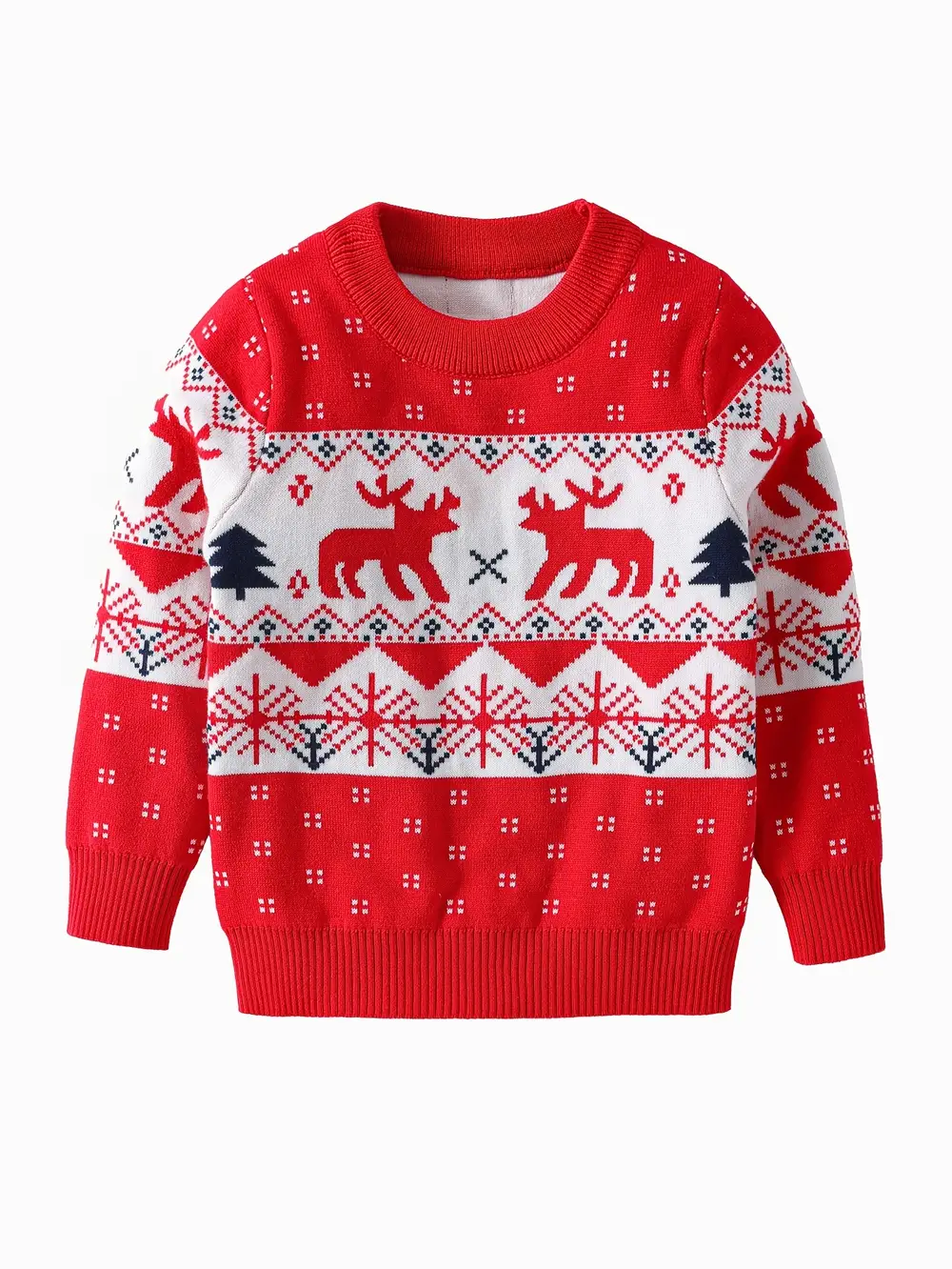 Pull de Noël enfant tricoté motif renne – doux, festif et chaud pour l’hiver