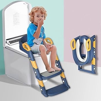 Reducteur toilette enfant avec Marche, Coussin – Siège de toilette Pliable, Hauteur réglable bleu