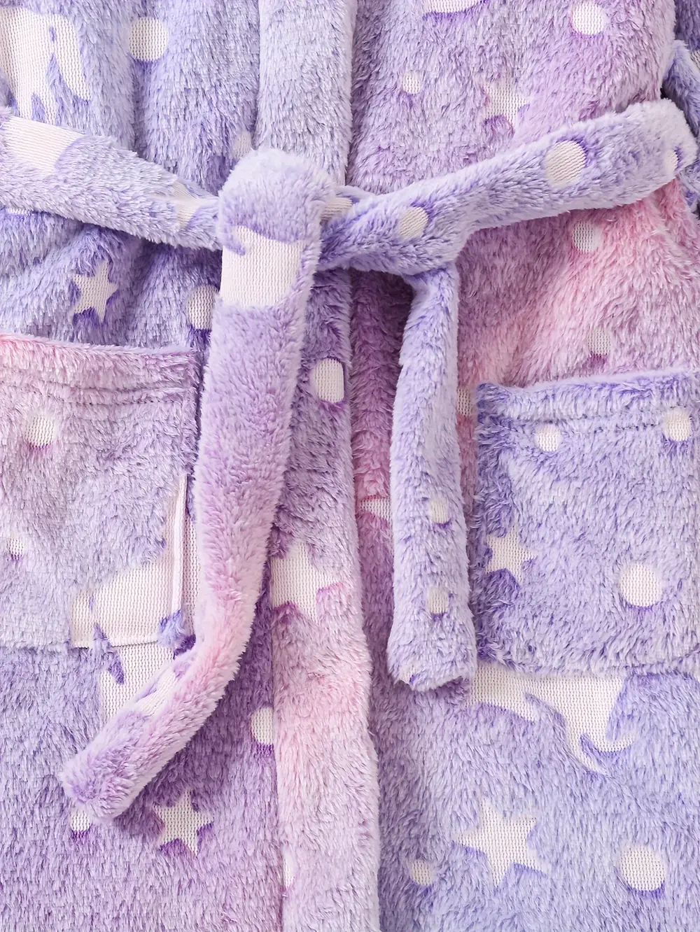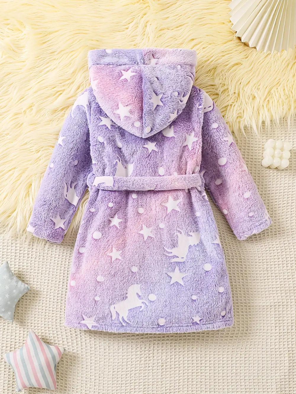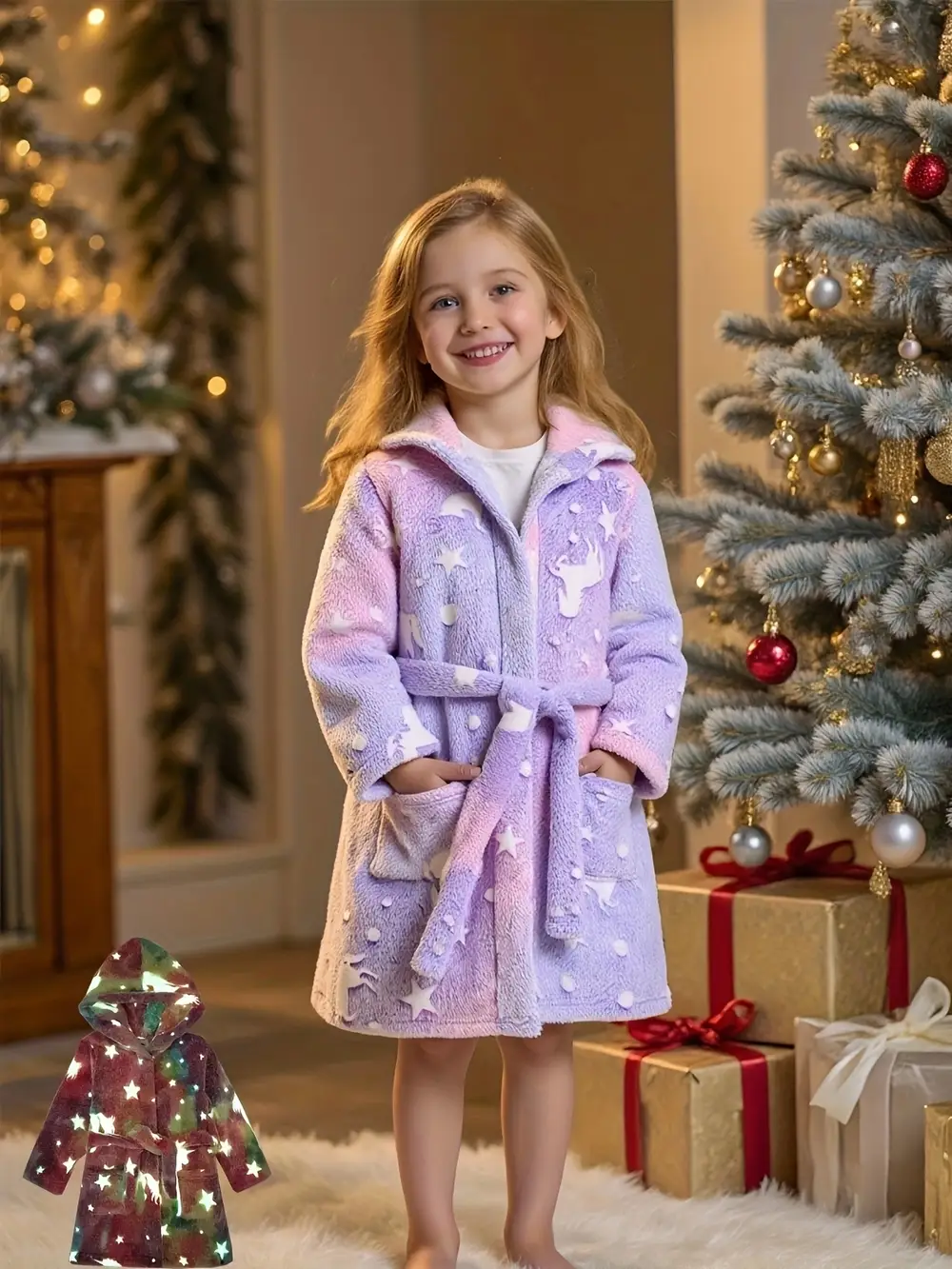 Robe de chambre enfant en flanelle douce avec capuche – effet phosphorescent