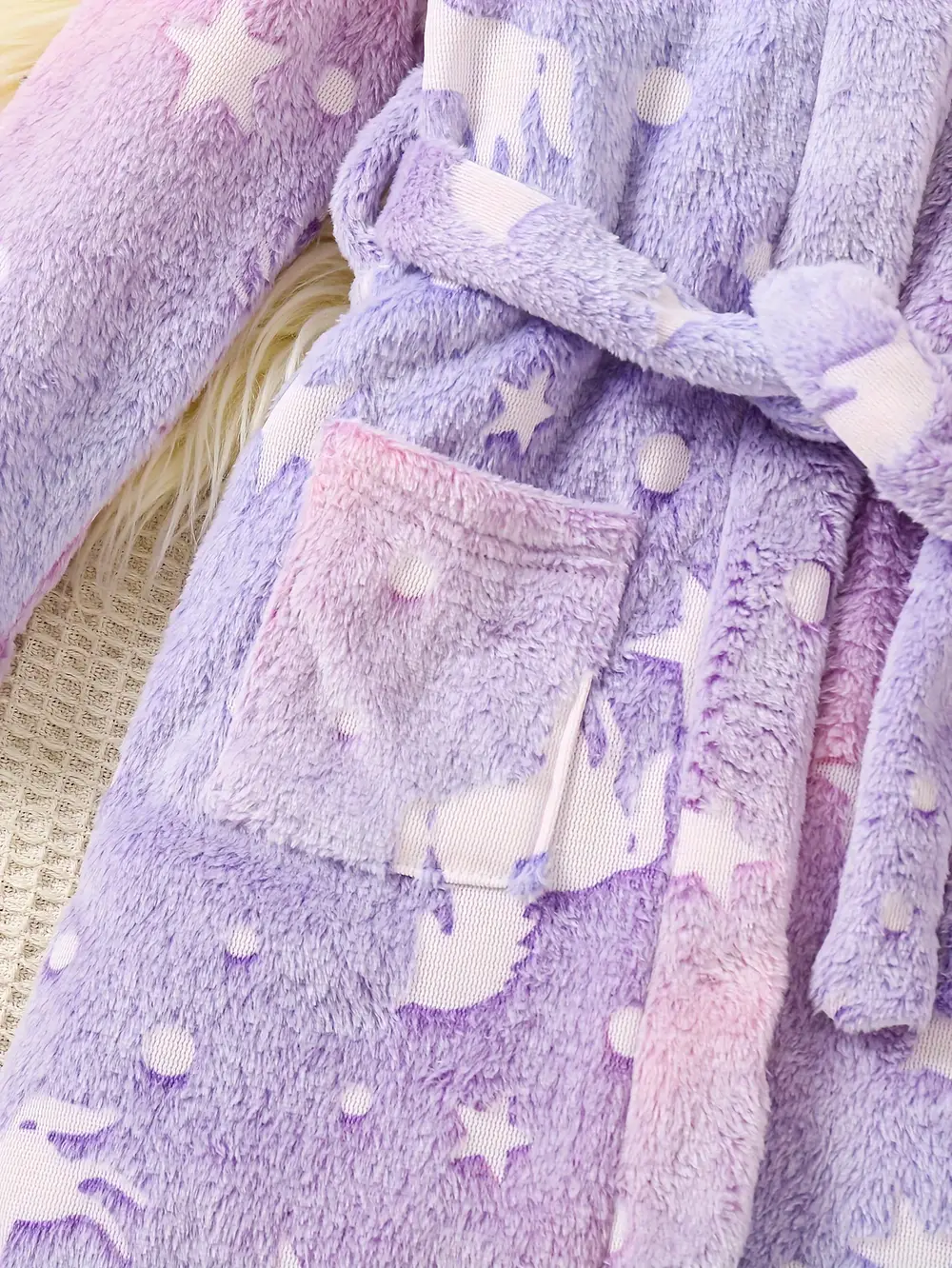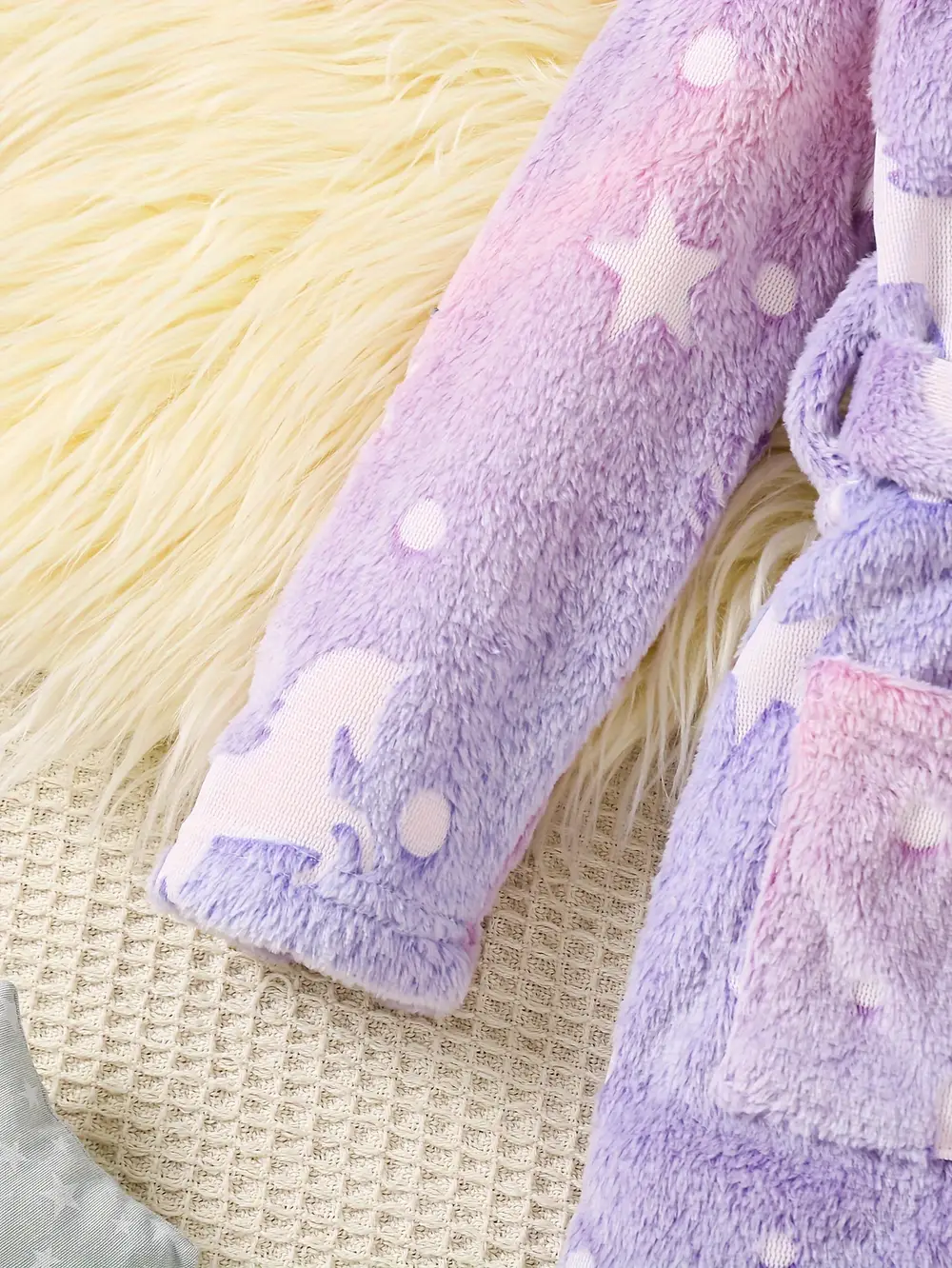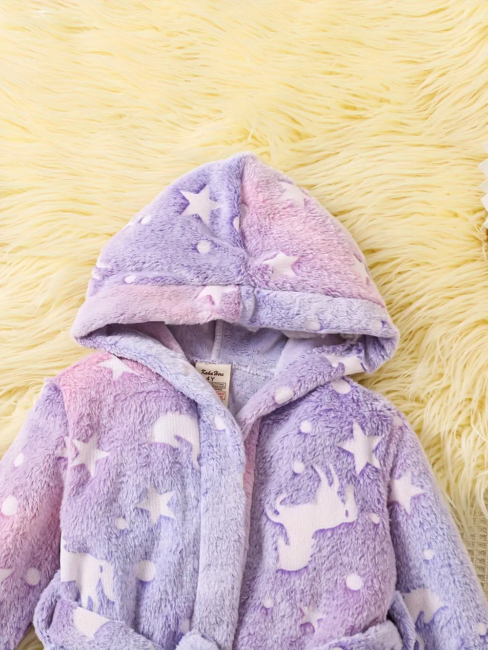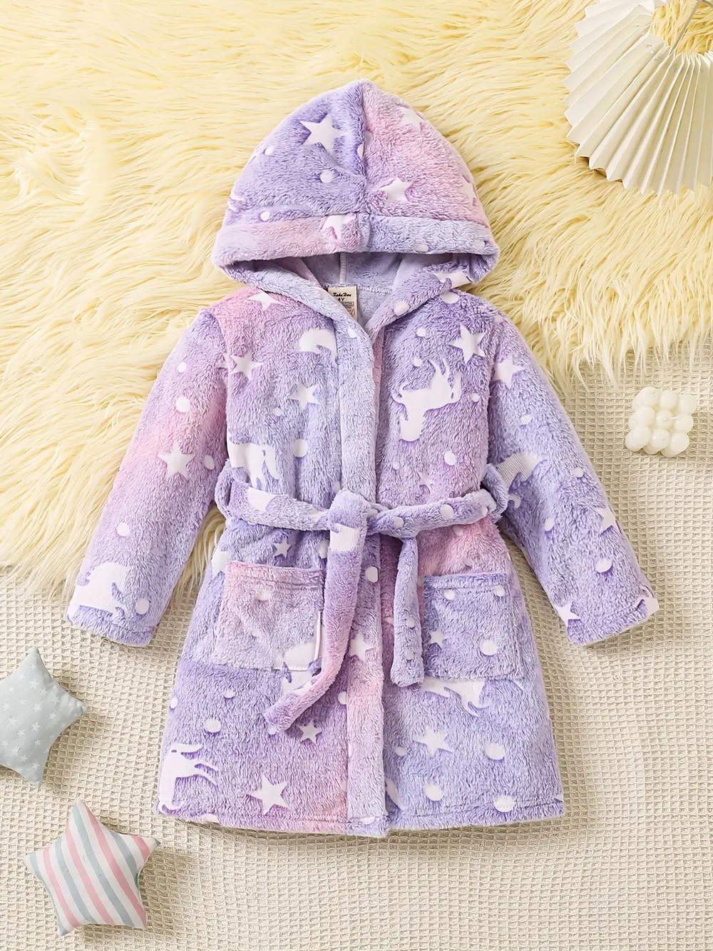 Robe de chambre enfant en flanelle douce avec capuche – effet phosphorescent