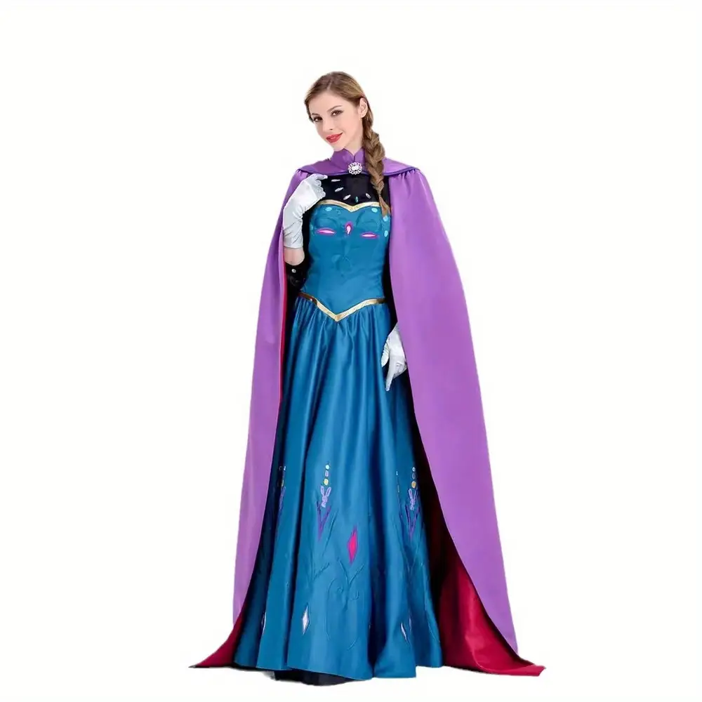 ❄️ Costume inspiré d’Elsa avec cape longue 👗 Disponible en tailles S à XXL pour adultes 🚚 Expédition sous 24h/48h 🎉 30 jours Satisfaite ou Remboursée