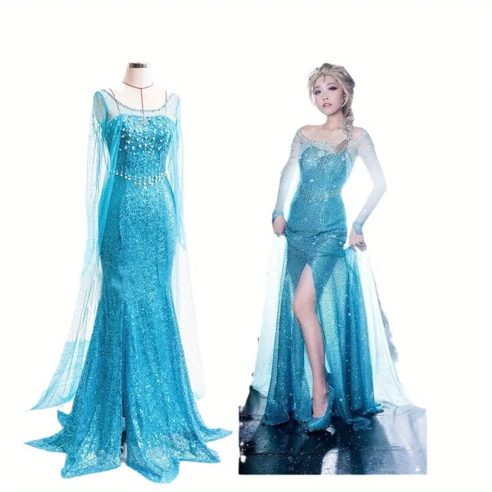 👑 Costume de princesse Elsa pour femmes adultes ❄️ Robe à manches longues, idéale pour cosplay ou fêtes 🚚 Expédition sous 24h/48h 🎉 30 jours Satisfaite ou Remboursée