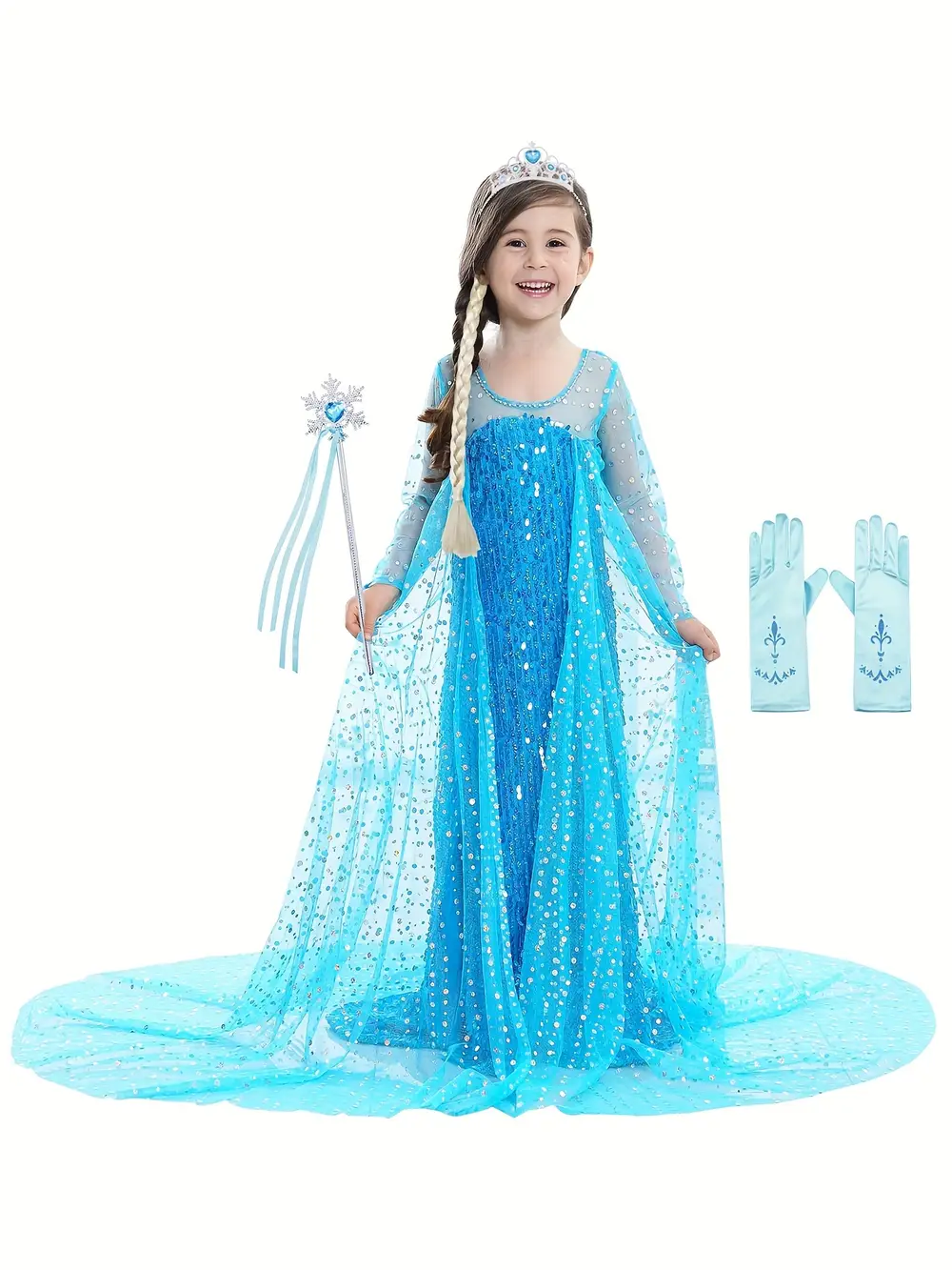 👗 Parfaite pour carnaval, Noël, Halloween 👑 Style princesse avec robe longue et accessoires 🚚 Expédition sous 24h/48h 🎉 30 jours Satisfaite ou Remboursée