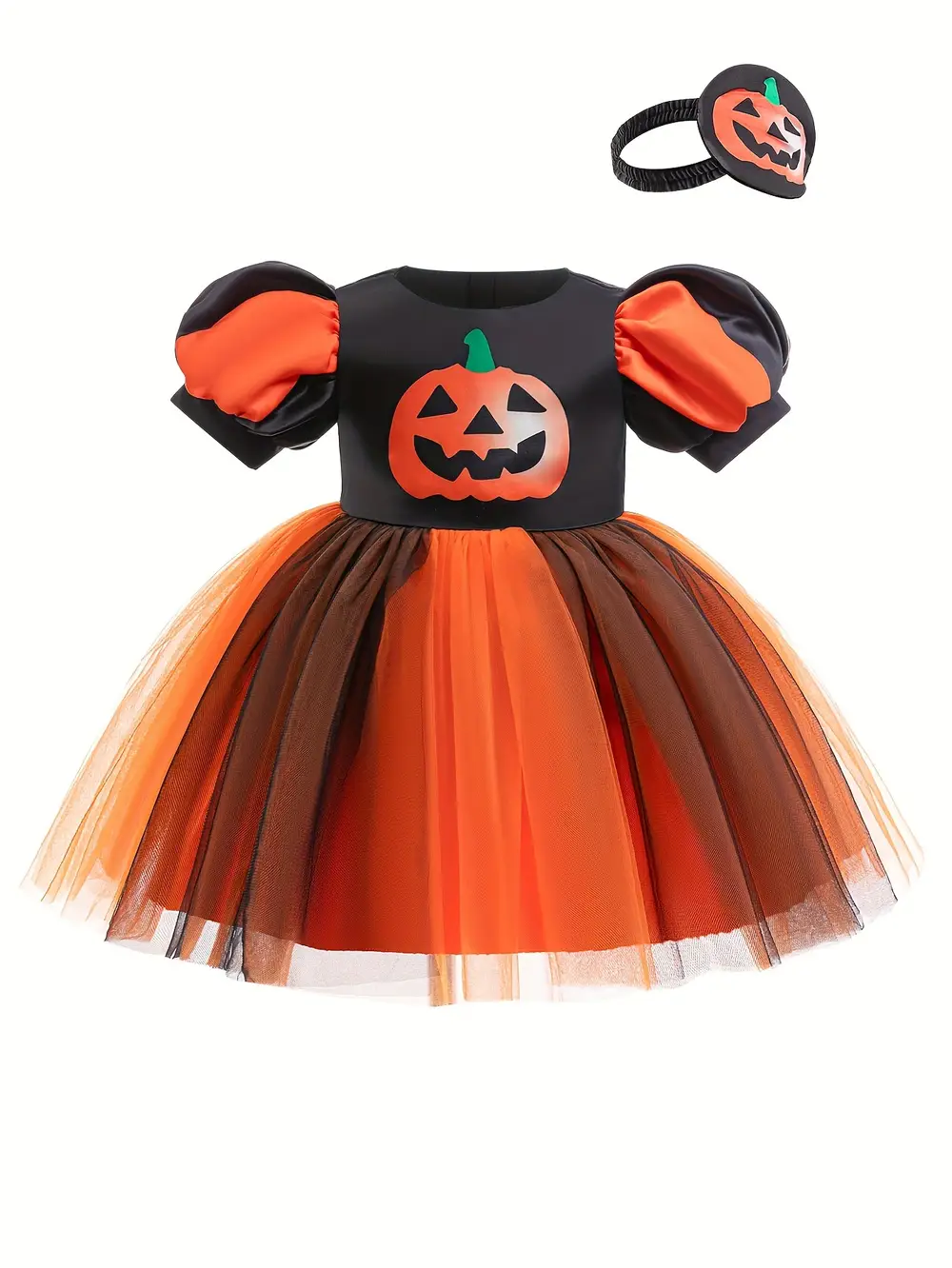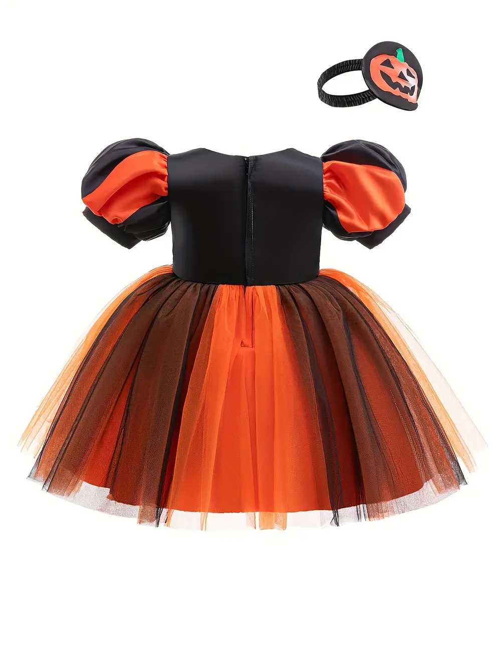 Robe princesse Halloween fille – costume citrouille avec jupe tutu et serre-tête