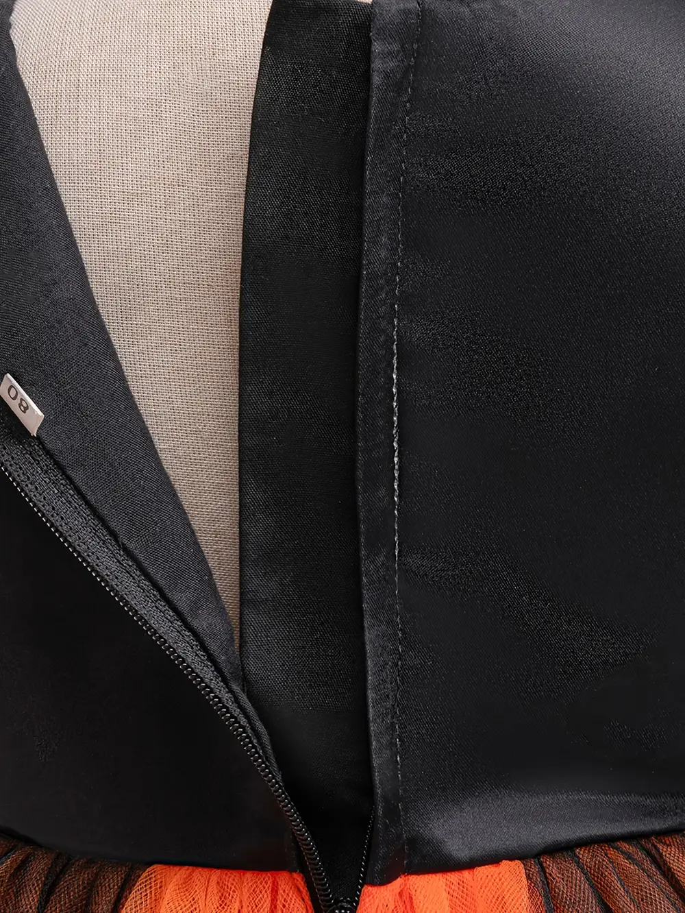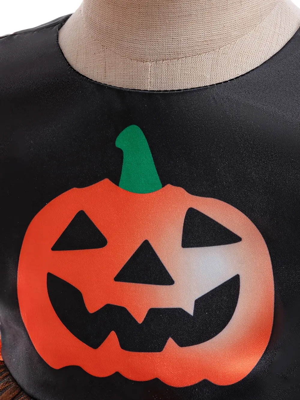- Le motif citrouille apporte une touche festive et joyeuse au classique déguisement fille pour Halloween