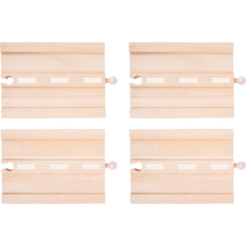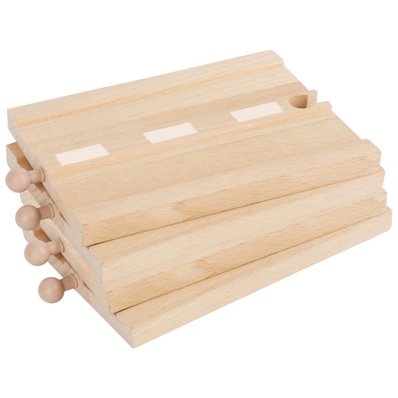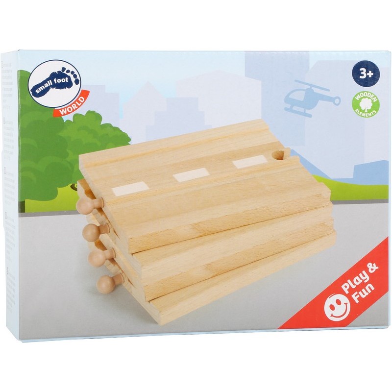 Ce kit contient 4 portions de route droite à double voie en bois. Les quatre pièces sont idéales pour créer un réseau routier ou prolonger le Parking Premium.