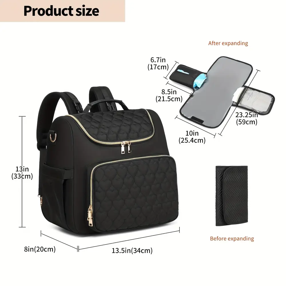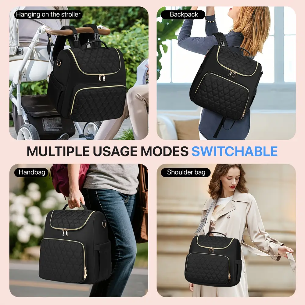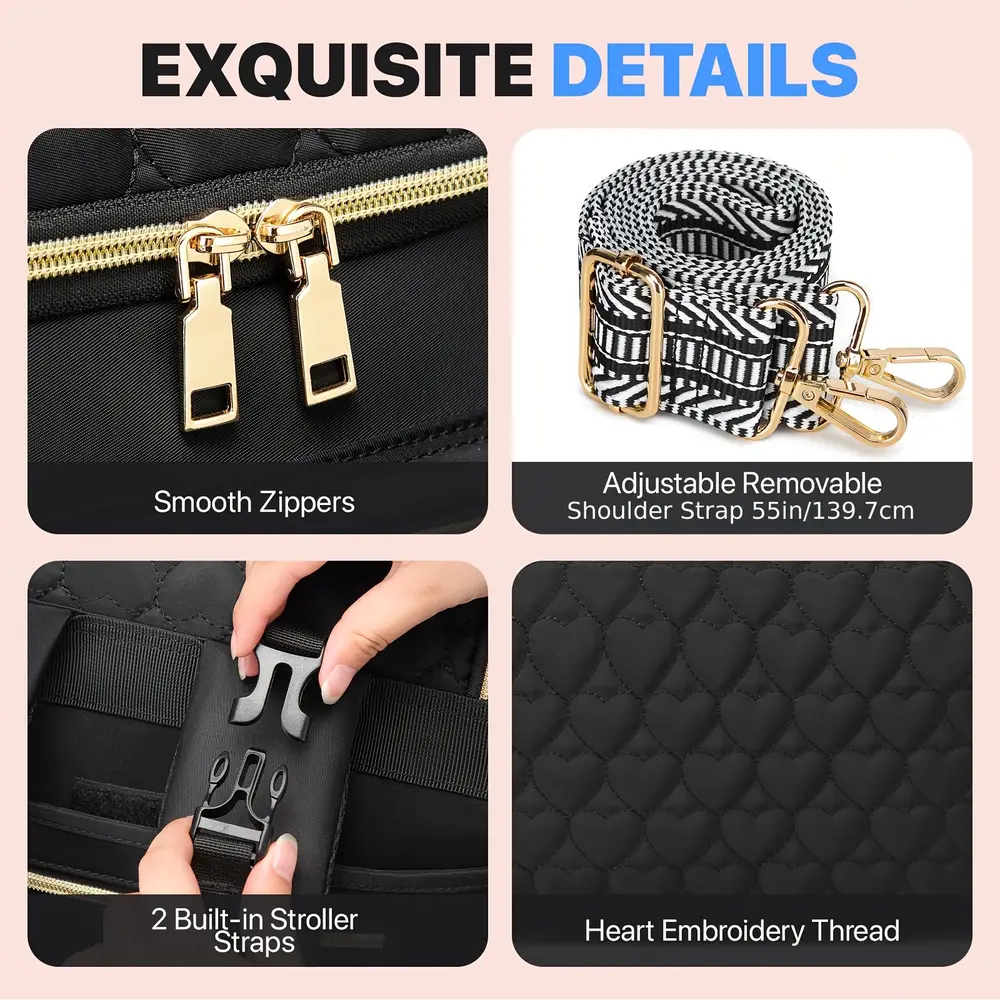 - Profitez d’un sac à langer grande capacité pour emporter vêtements, couches et affaires de bébé facilement.