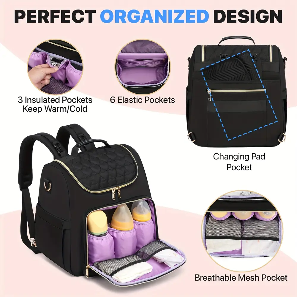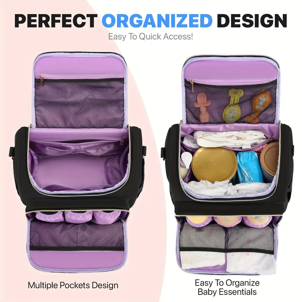 - Son design multipochettes offre un rangement structuré pour biberons, jouets, tétines ou serviettes.